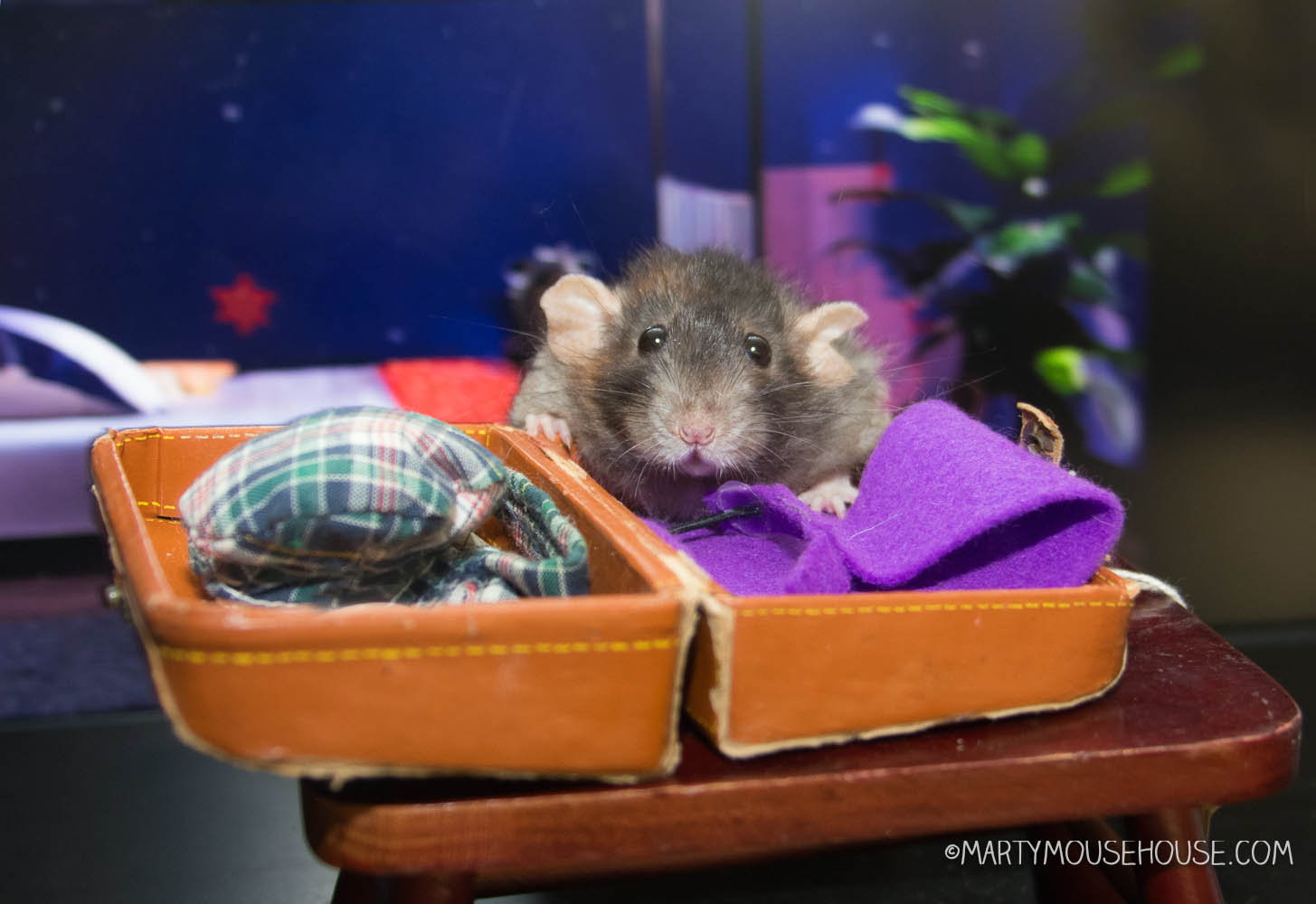 Reuben flipped open his little suitcase, stuffing in two scarves, a fresh bowtie, emergency croissants, and his trabel cheese journal (on loan from Fish). He tried not to get too nerbous as he told his mom he was going to France wiff Dougie – hoping to make his scooter dream come true. His whiskers twitched and he was waiting for word from Professor Whoot as to when the portal would be open.