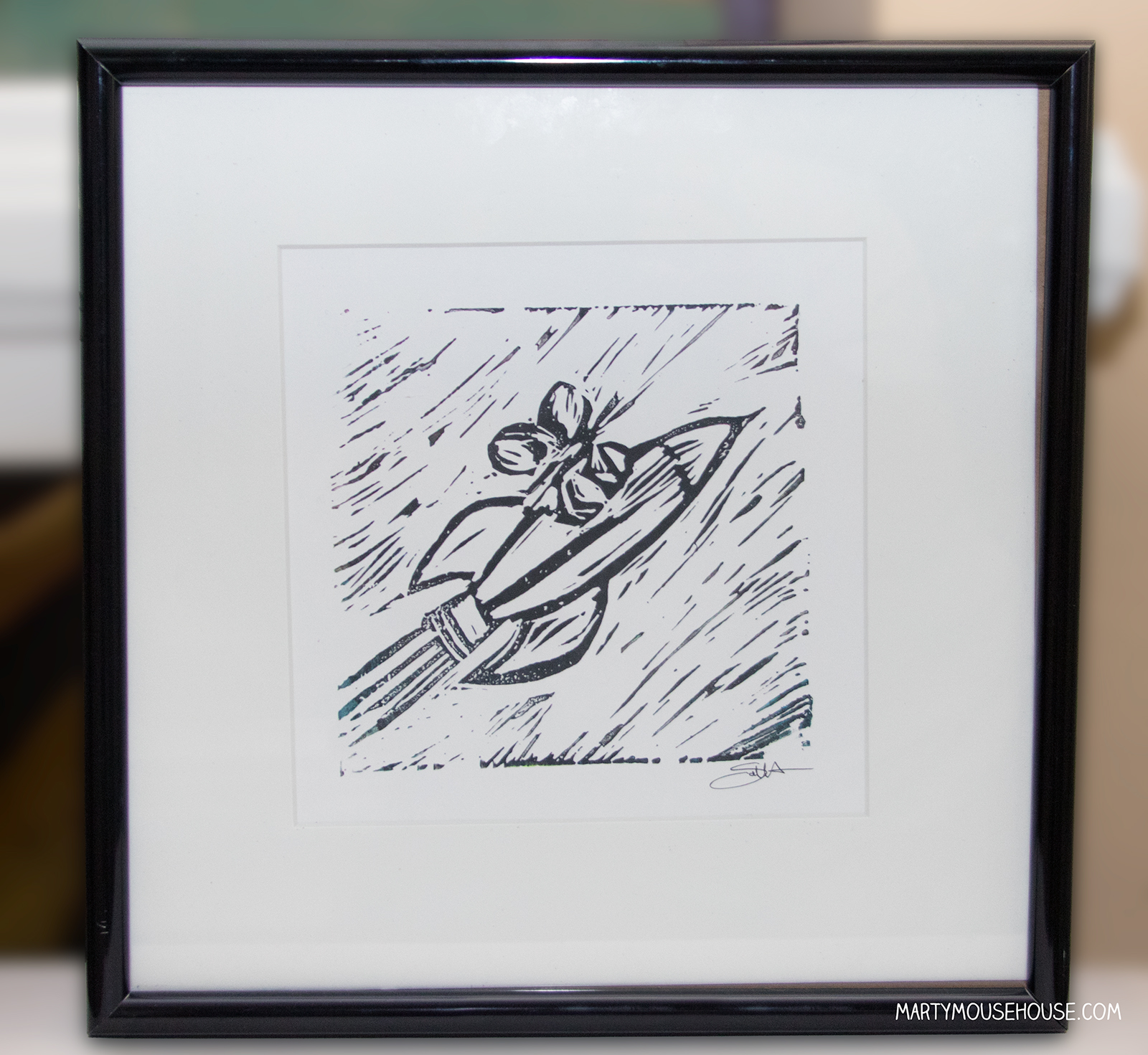 I was kind of amazed at the stylized print that came out of the effort!! It’s called block printing where you carve an image and then ink and stamp it onto a thick paper.