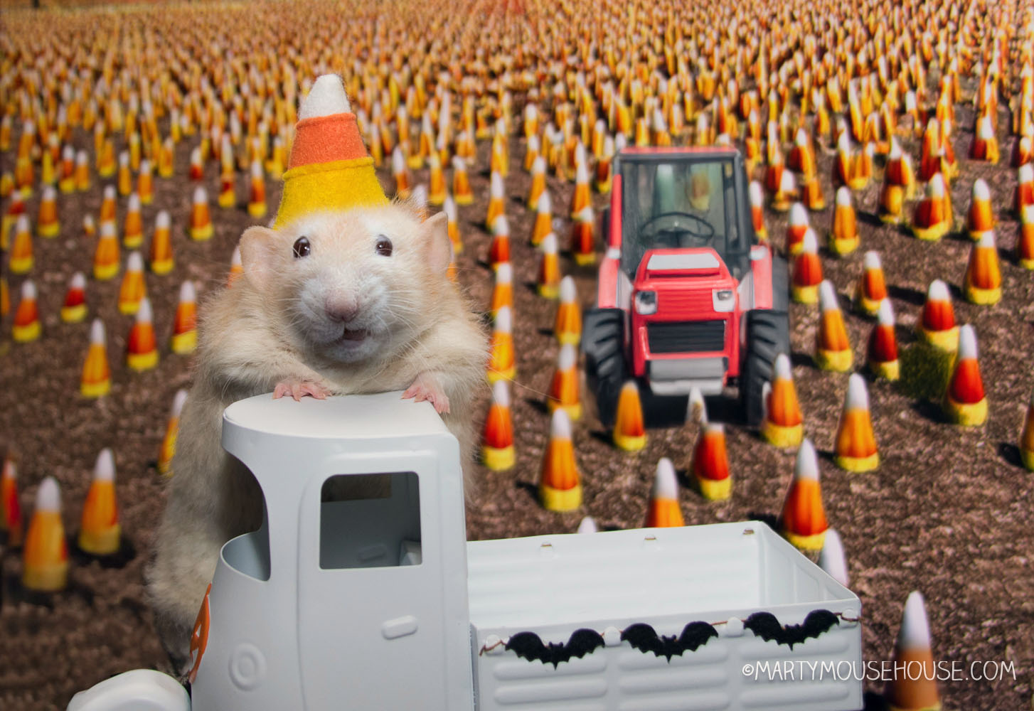As the sun dipped low and the candy fields sparkled like a thousand tiny lanterns, Barry leaned on his truck and smiled. “Another sweet season,” he said, brushing sugar dust from his fur. “Wiff any luck, we’ll hab enuff camdy corm to last ‘til next Halloweem… or at least until Reuben finds the stash.”