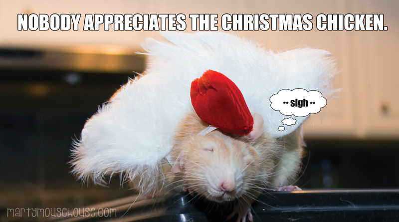 Fibbs, Milo, Wimbley & FibbsThe Triumphant Return ob the Christmas Chicken Last year, Marty originated the Christmas Chicken.d I’m outta here… December 24, 2015/1 Comment https://www.martymousehouse.com/wp-content/uploads/2015/12/xmas_day1.jpg 834 1500 Marty's Mom (MM) http://martymousehouse.com/wp-content/uploads/2022/06/MMH_Logo_Halo.jpg Marty's Mom (MM)2015-12-24 02:20:242015-12-24 02:20:24The Triumphant Return ob the Christmas Chicken