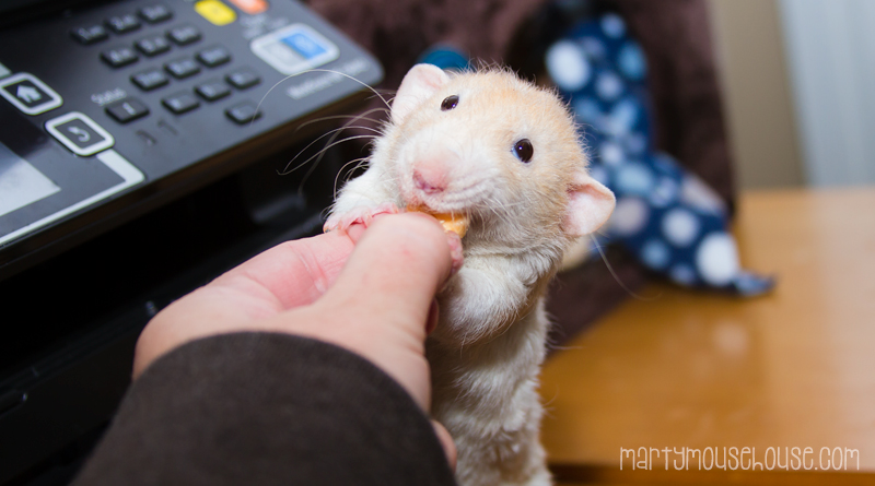Spinal issues and hind end weakness are not uncommon in rats as they get older though Wimbley is still pretty young (I think?) – mostly it tends to be a slowly progressing thing, though, and usually the xrays or scans that show it would only be used for sudden, acute cases like Wimbley. That and it can be quite hard to determine the exact cause in a little rat. So it’s probably underestimated in how often something like this happens.