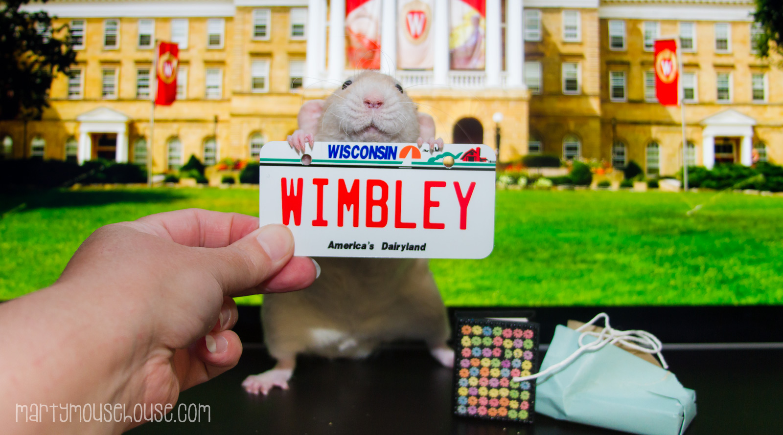 I got a magic book!!  Gilliam Simpson sent us all Wisconsim bizness licenses, so I took my package wiff me, and we all went to the land ob cheese.  As soon as we got there I went to the Unibersity ob Wisconsin in Madison (where my mom and dad went to skool) and I opened my package on Bascom Hill.   And guess what?  It was a magic book!   Eberytime you read it, it’s a different story.  I sat on the hill and read it three times already.