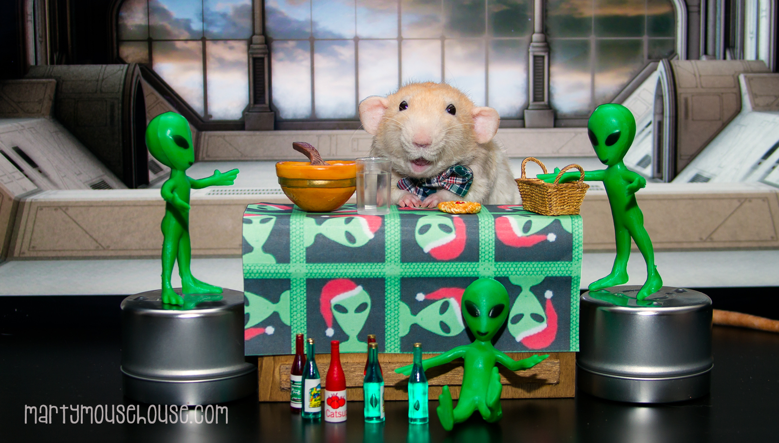Deer Diary – I hab been wiff my new aliem friends for a couple days now and we are habing such a great time! I fink people hab the wrong idea about them, they aren’t scary or anyfing and they habn’t probed me eben once. Larry says dat isn’t eben true. Tomorrow they are going to introduce me to their leader, I’m looking forward to that! Today we had an aliem Christmas picnic. Their snacks are a bit different and weird, the chef made somefing called Pre-Nutritive Squeeg Paste. So I just had a danish. P.S. Dis Wimbley.