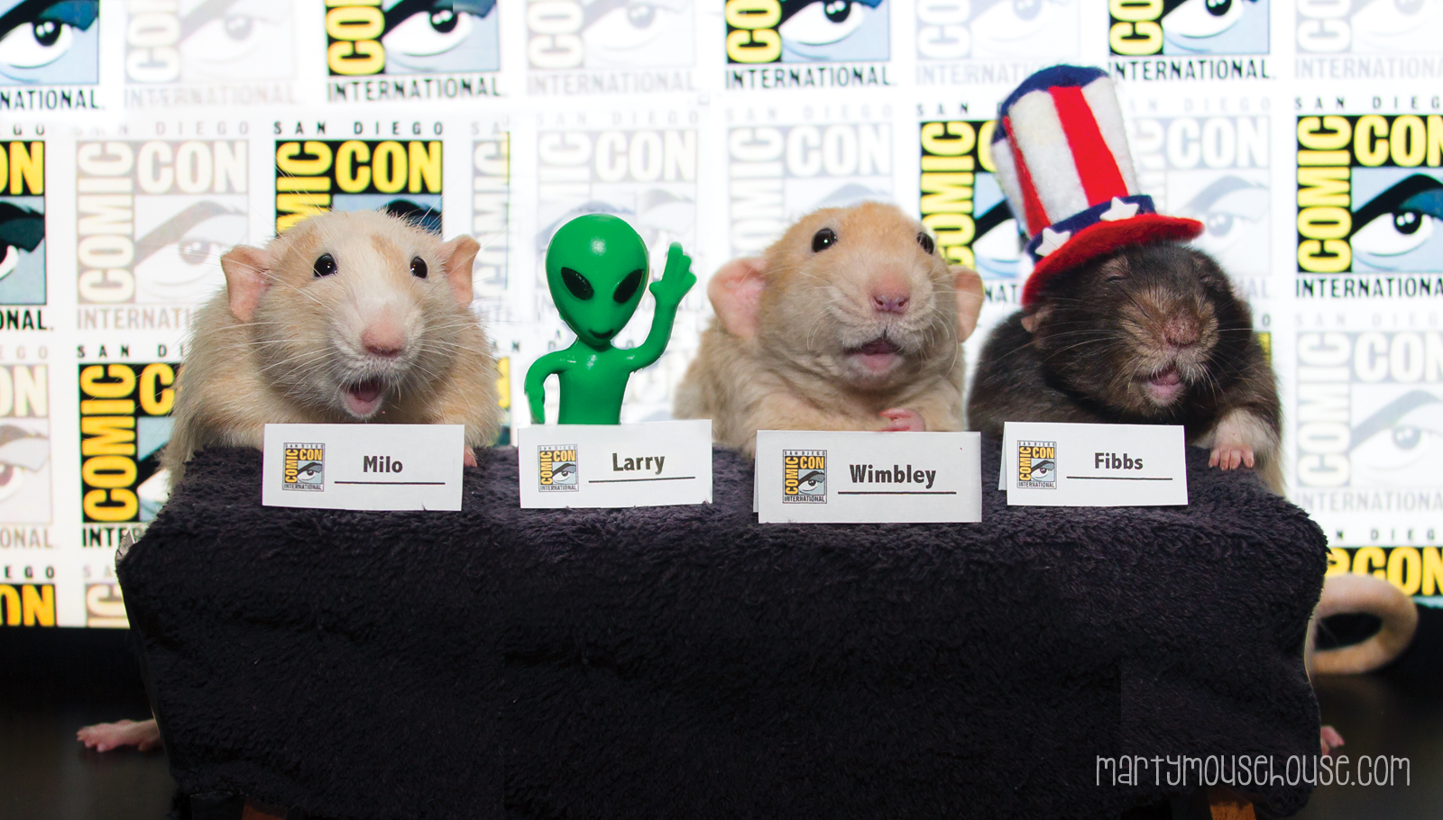 Fank you to eberyone who attended our panel yesterday at Comic Com! I fink it was the best one eber. Larry the aliem dropped us off at the conbenshun center and joined our panel to take some qwestshuns and told people about some cool aliem stuff. We all had a great time and had alot ob laughs. Ob course I handed out donuts and asked for botes too since we had such a large crowd. We stood in some lines, got some autographs (I got Sigmund of Seamonster fame) and watched the costume show. There was a lady from New York dressed like Bizness Marty! She wins. Until next time Sam Diego! Fanks for habing us.