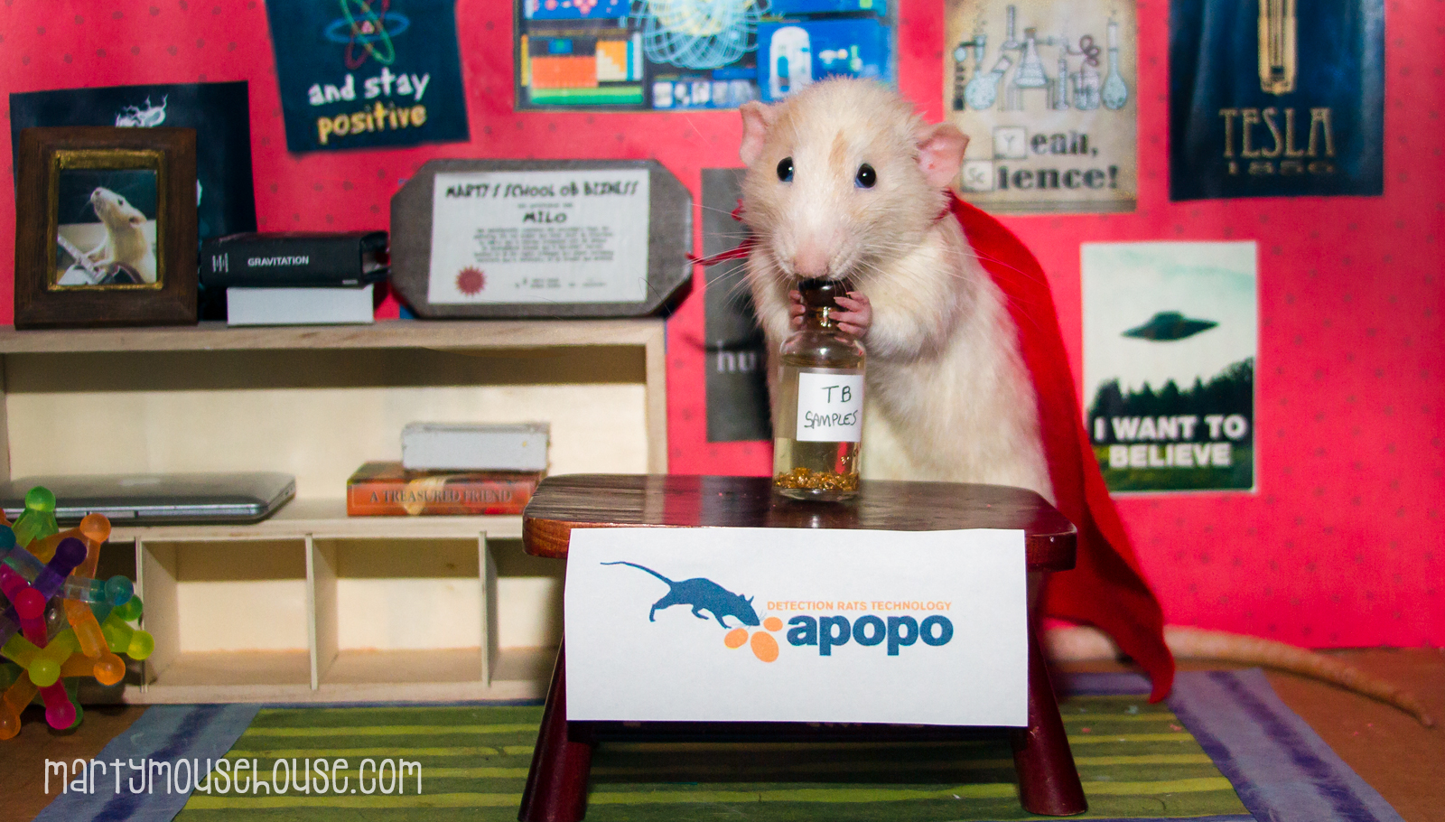 Wimbley is still on aliem watch, but Fibbs and I are going to show APOPO dat we can detect TB and help sabe people too. We have good sniffers! We can be Hero Rats, just the American smaller bersion wiff superhero capes and a science lab. I fink we let them stick to finding the landmines.
