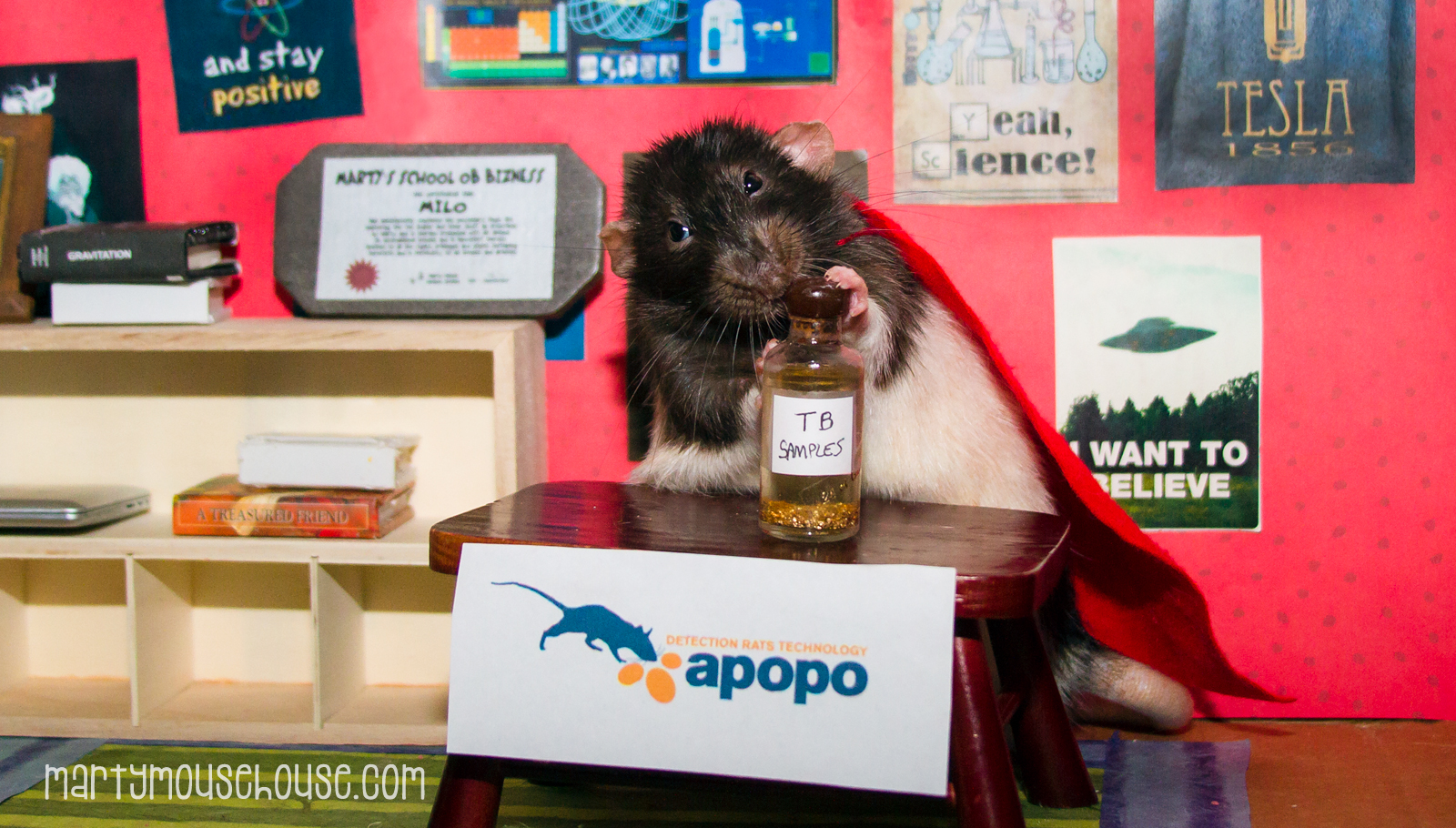 Wimbley is still on aliem watch, but Fibbs and I are going to show APOPO dat we can detect TB and help sabe people too. We have good sniffers! We can be Hero Rats, just the American smaller bersion wiff superhero capes and a science lab. I fink we let them stick to finding the landmines.