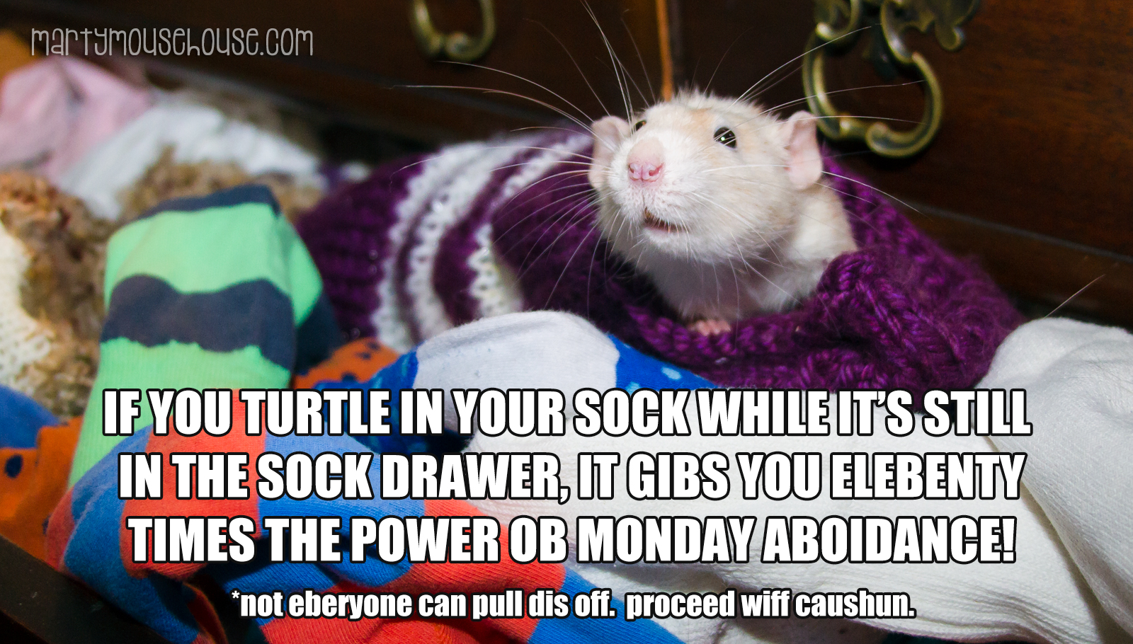 Darn it, I don’t FIT in my sock drawer, Milo! What to do? Maybe I need to find/make a giant “sock” that I can wear in bed…