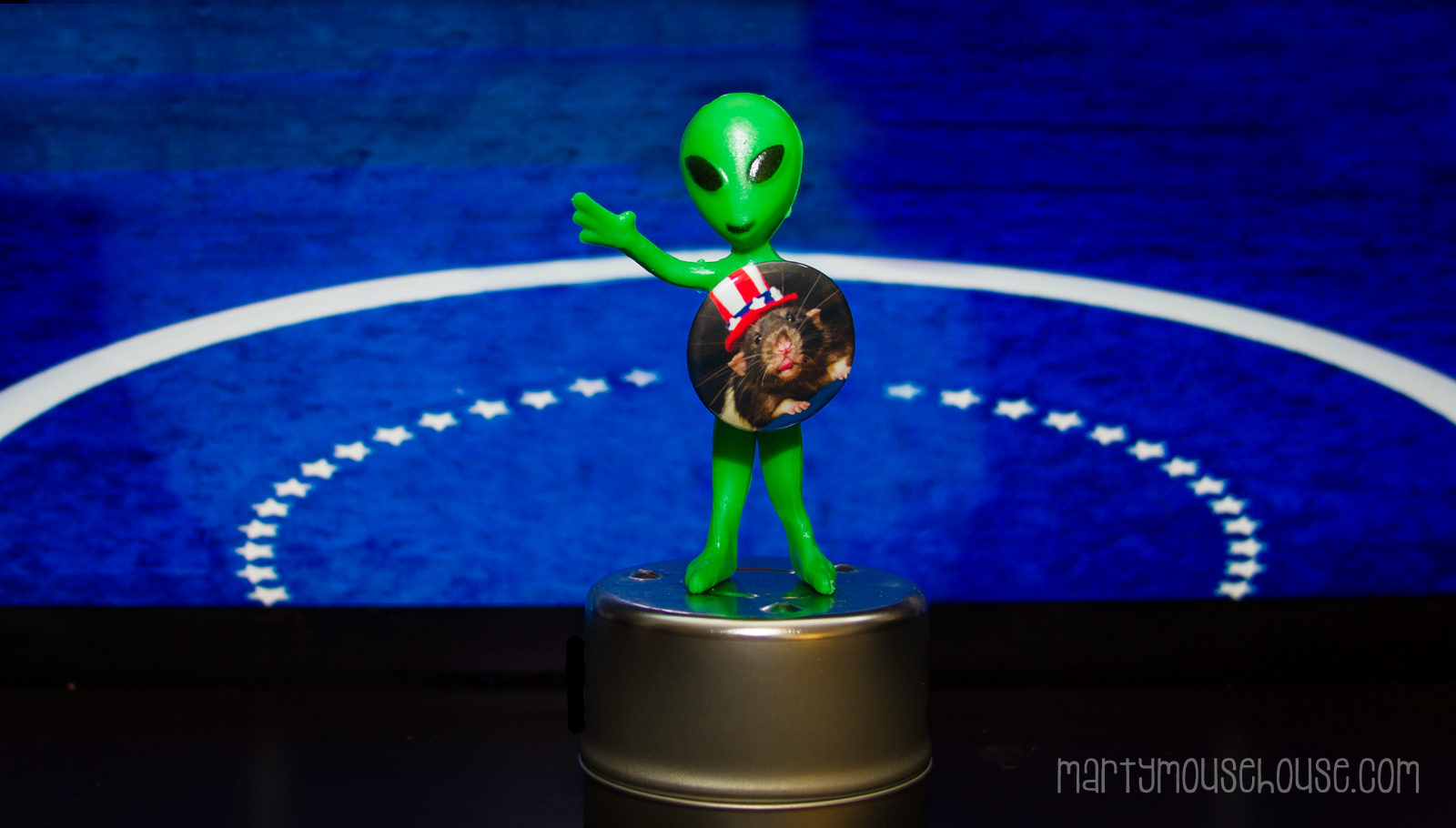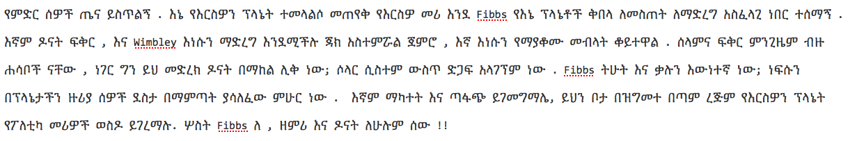 (TRANSLATION:  Hello people of earth.  I felt it was important to make a return visit to your planet to give my planetary endorsement to Fibbs as your leader.  We too love donuts, and since Wimbley taught Jack how to make them, we have been eating them non-stop.   Peace and love are always great ideas, but adding donuts to this platform is genius and has garnered support throughout the solar system.  Fibbs is a gentleman and a scholar, who is true to his word and has spent his life bringing happiness to people around the planet.
