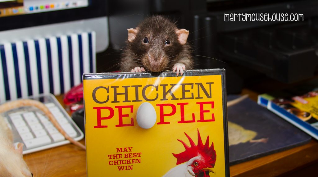 Fibbs: “For mobie night, I wanna watch dis one.” Mom: “Chicken People? What’s it about?”
