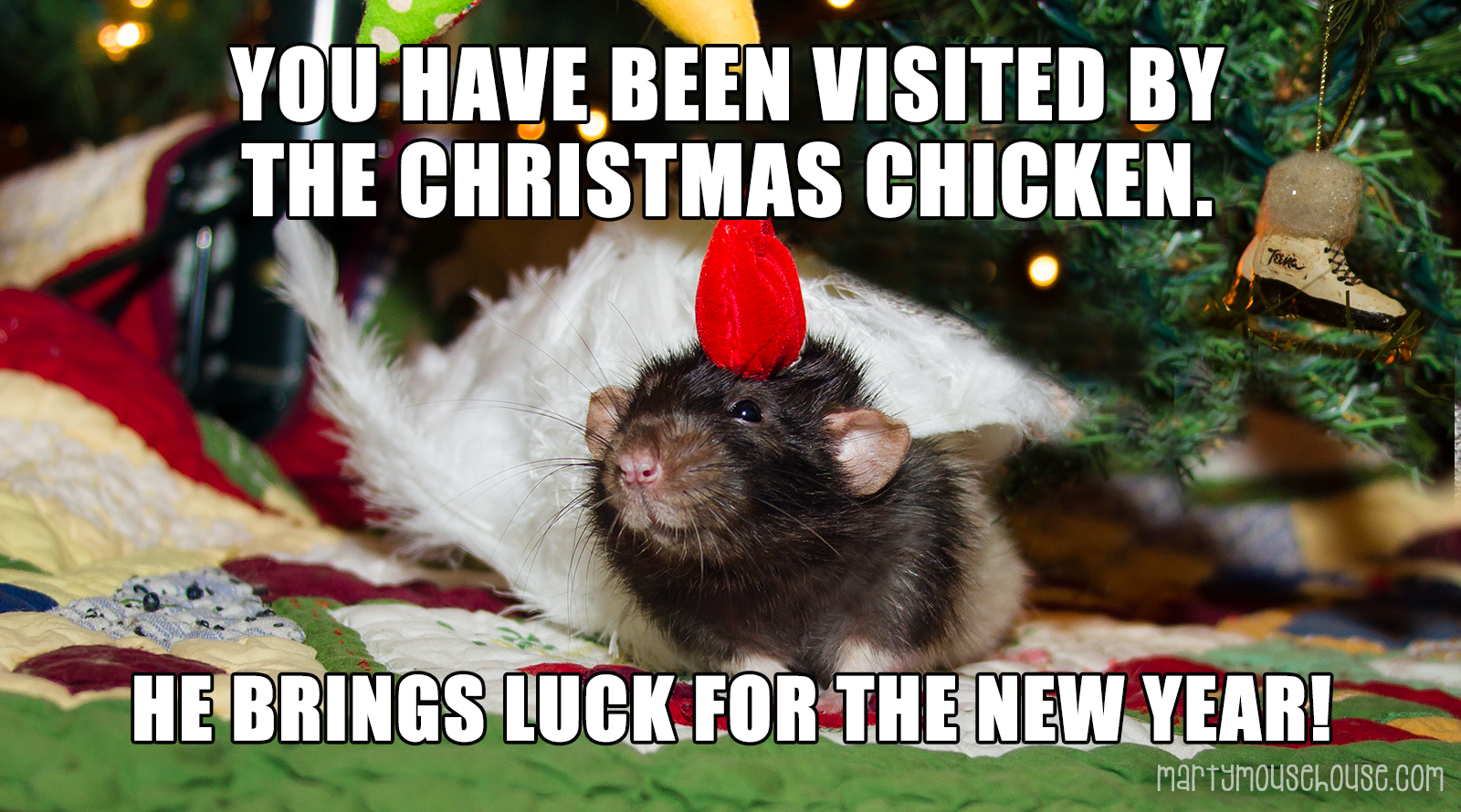 Oh, Christmas Chicken thanks so much for your visit. I’ve been a very good girl all year long and can really use some good luck in the upcoming year.