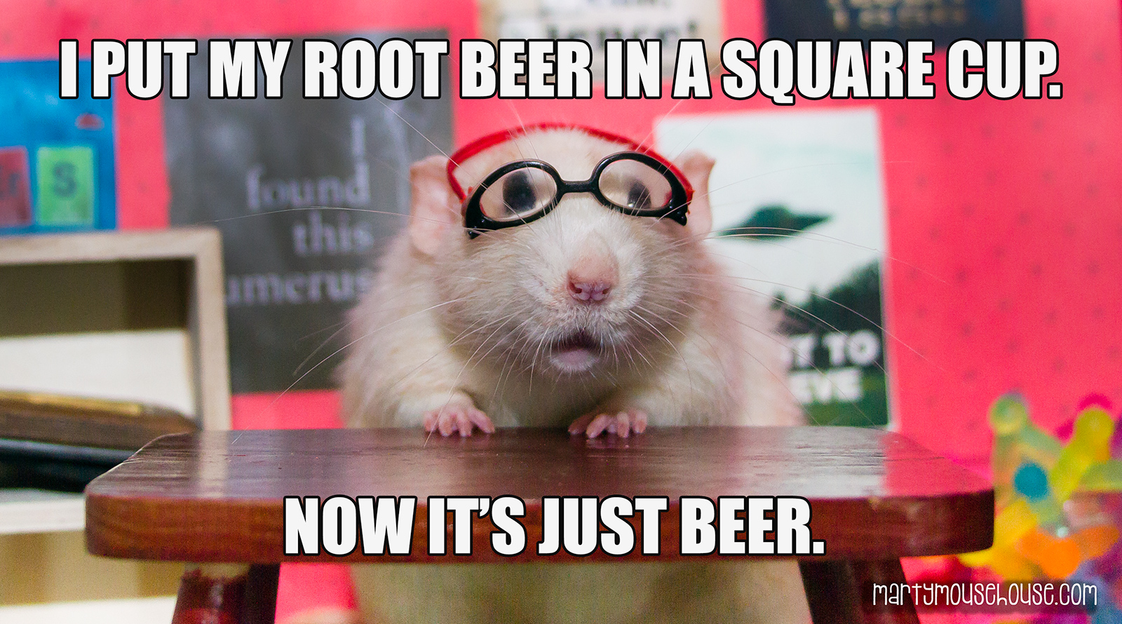 Oh no! That’s awful, Milo. Stupid square cup. Wait a minute, square cup, root beer. Do you mean square root, my darling furry Milo? If dat’s what habbened, I’ll send you root beer in a water bottle. I’ll even make sure it arrives properly chilled to jus da the right temperature.