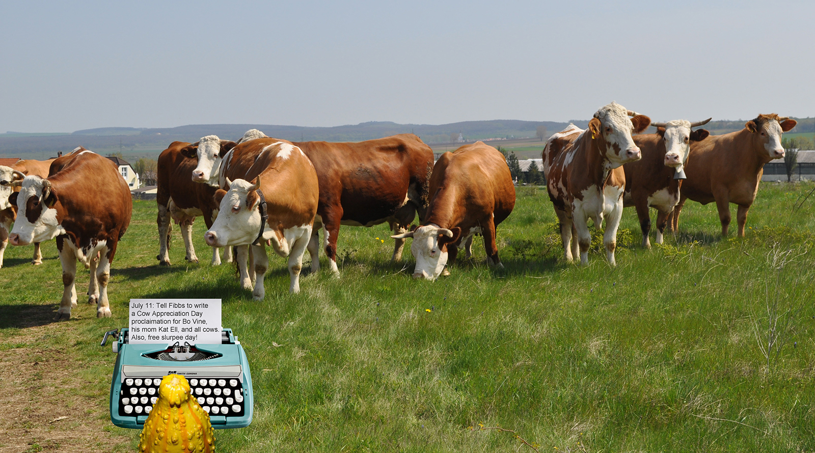 It turns out that July 11 is Cow Appreciation Day. They would really be honored if you sent out a proclamation to all your loyal Donutcratic party members reminding them to be extra thankful for cows. After all, they said, it if wasn’t for cows, there wouldn’t be milk, ice cream, or heaven forbid, yogis! And what kind of world would that be. So please send out an executive order reminding everyone to celebrate cows on July 11.