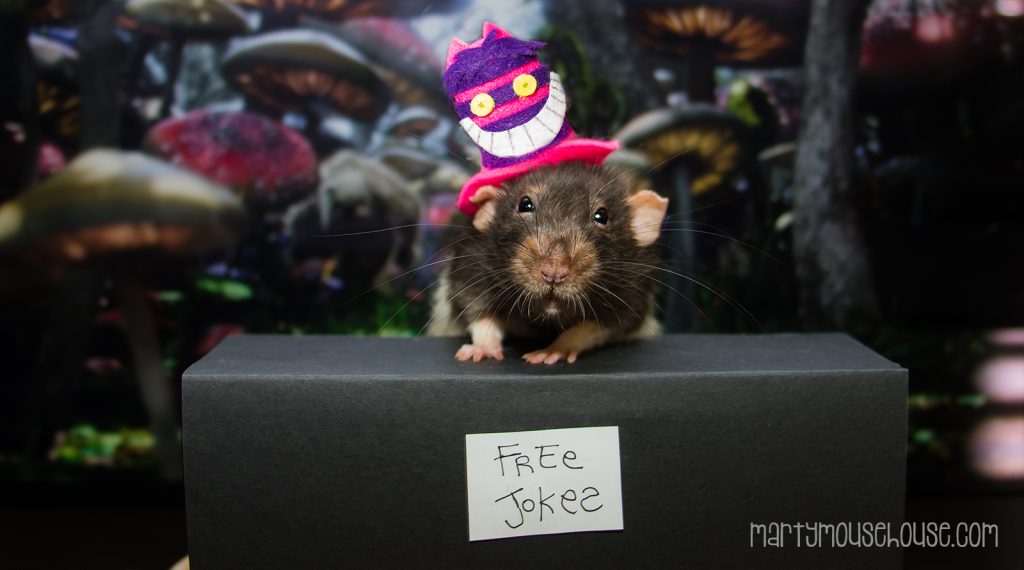 (Awesome Cheshire Cat hat by A Hat for My Rat – France’s finest rat habbedashery! Ebery rat needs some hats!)
