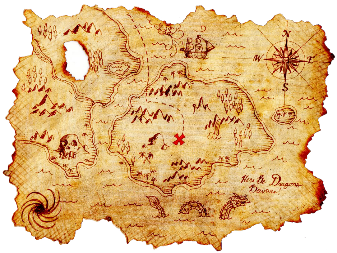 He’s ok! He had been swimming and choked on somefing in the water and washed ashore. The paramedics on the deserted island did some chest compresshuns, and some water and a piece ob paper came squirting out! Fankfully, I was the only one that saw it, and guess what?! It was a map to the treasure!! Once we were alone I showed it to Paul (the dragon) we played some checkers while we waited for it to dry out. We studied it, and we hab a plan!! Starting our qwest to find the hidden treasure in the morning after a good nights rest. We fink it’s probably where the big red X is.