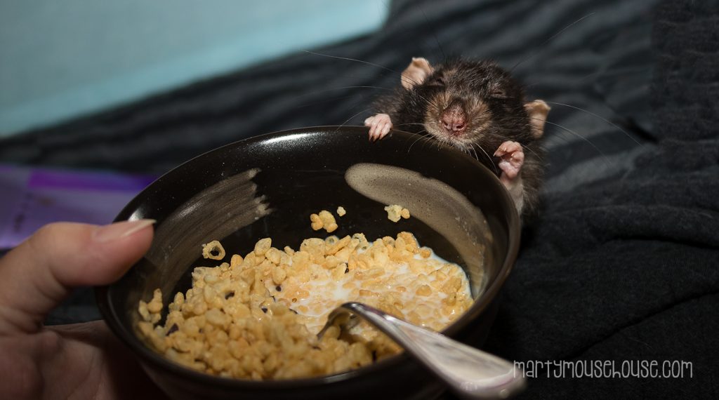 I lub sharing breakfast wiff my mom. We are habbing wice krispies.