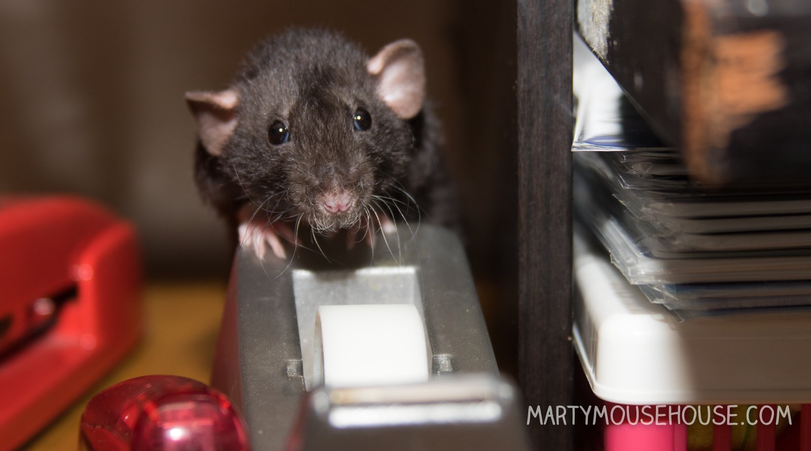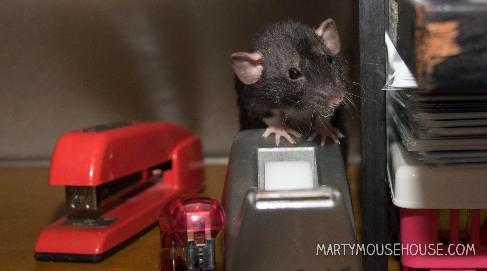 Shhhh… Cosmo is in the midst of contemplating tape and stapling before actual class begins and needs to consemtrate.