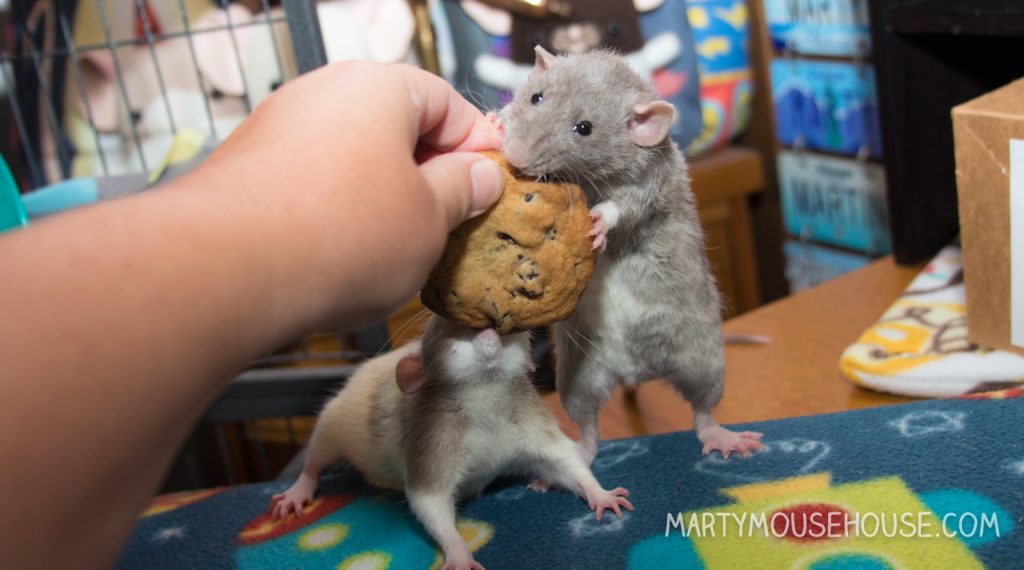 What a perfect way to celebrate! If you had that whole cookie to stash it would last till next rat day, so better to let Mom have a bite so you can get a fresh new cookie!