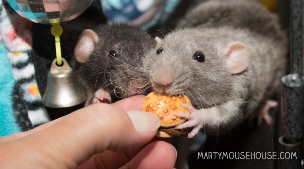 Hi everyone. MM here. I have something kind of serious to tell you today. There was a freak rat pile accident this weekend, and Augie’s eye was injured pretty badly. Thankfully even though it was Sunday, his regular vet was on the Sunday rotation and we were able to get him seen immediately. He got some pretty good pain meds (judging by his behavior later that night) and is resting comfortably. We went in for a recheck this morning, and it’s still too early to know what the fate of his eye will be, but we are hoping for the best! Tonight he is chilling and enjoying some peas. (Photo is obviously pre-trauma, enjoying some burgers).