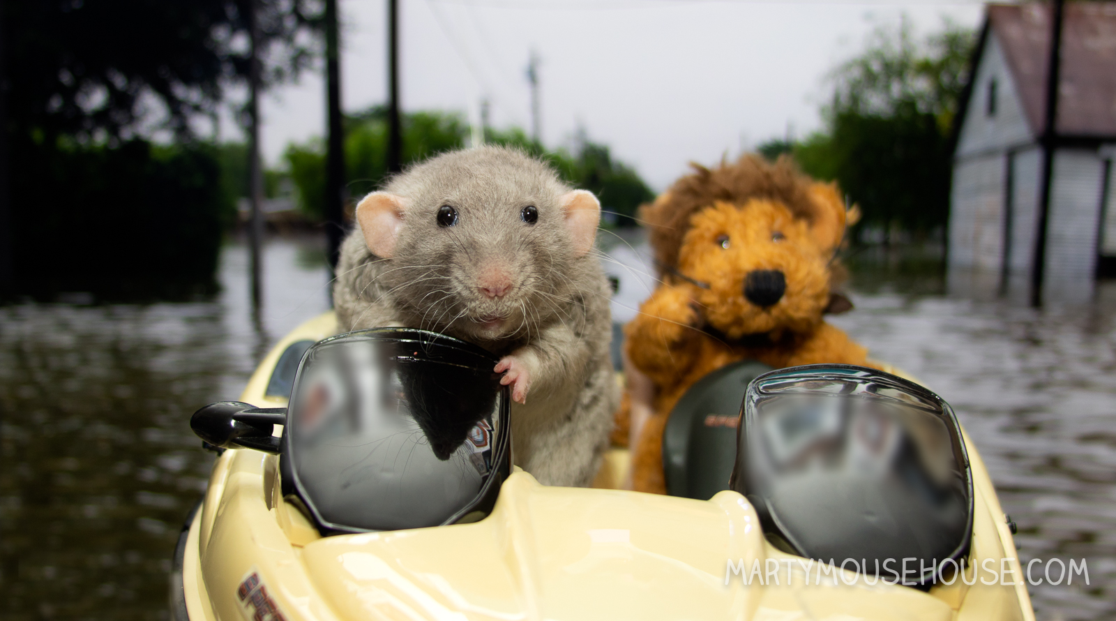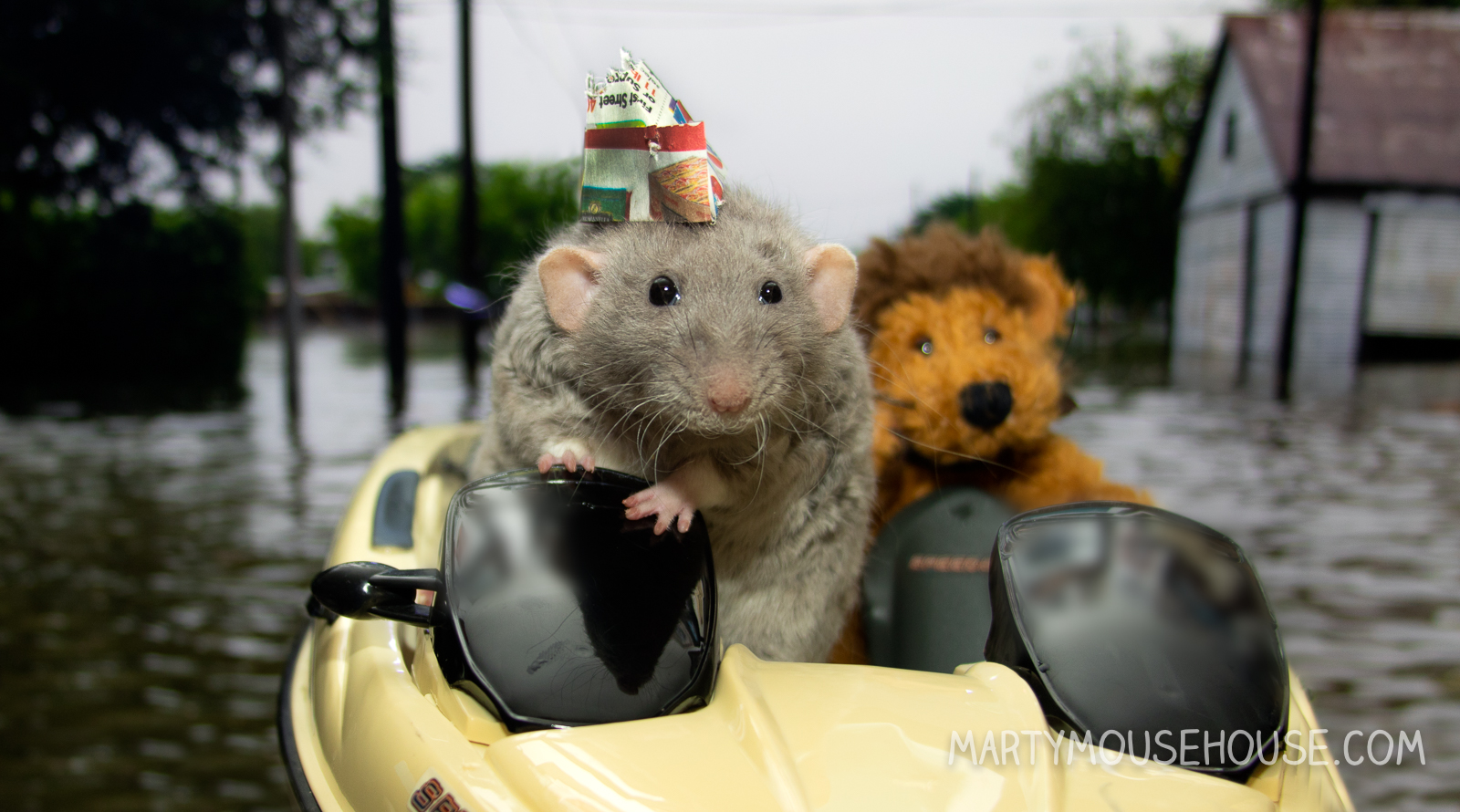 Hai Eberybody!  Dis Augie Abalache, and boy did I hab a bad night last night!  It was berry scary, but I didn’t want to gib up.  Today has been much better. I found a boat, and hab been rescuing people who hab been stranded in the floods.  Dis is Gary and was stuck in his house wiff water coming up the top.  He couldn’t ebacuate because he doesn’t hab a car and doesn’t dribe.  He’s been helping me and we hab rescued seben others.  We hab a hotel room tonight and lots ob snacks, so don’t worry, we are doing good! I’ll sabe a few more people tomorrow after a good nights rest, and then I’ll go home.  The bag my trabel juice was in got washed away by the under toad, but I’ll find a way to get home.