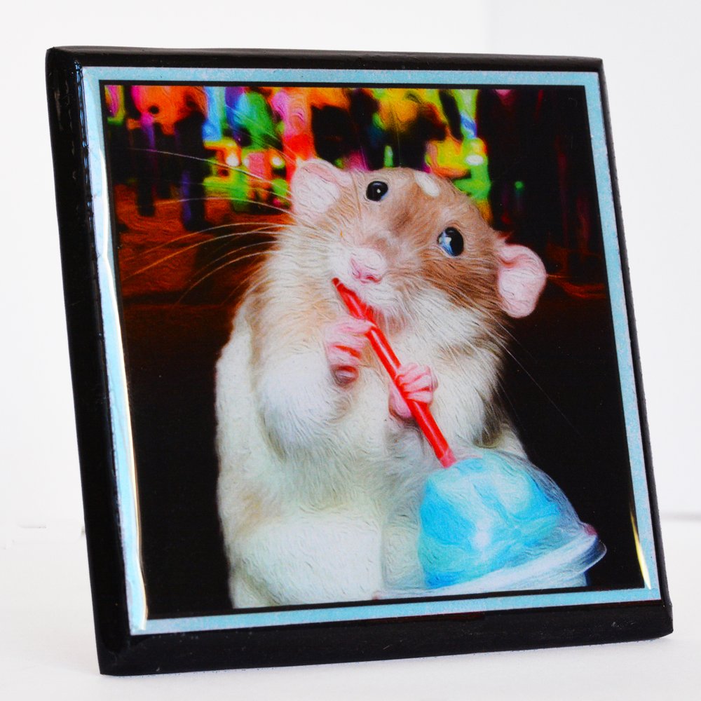 Tired ob water rings on your table!? We hab an answer! We hab coasters for your table preserbashun needs.  This set ob four coasters will add life and fun to any table and keep it from getting all messed up wiff water rings and stuff (as long as people use these, which we can’t be in charge ob, you kind ob hab to patrol that in your own house).