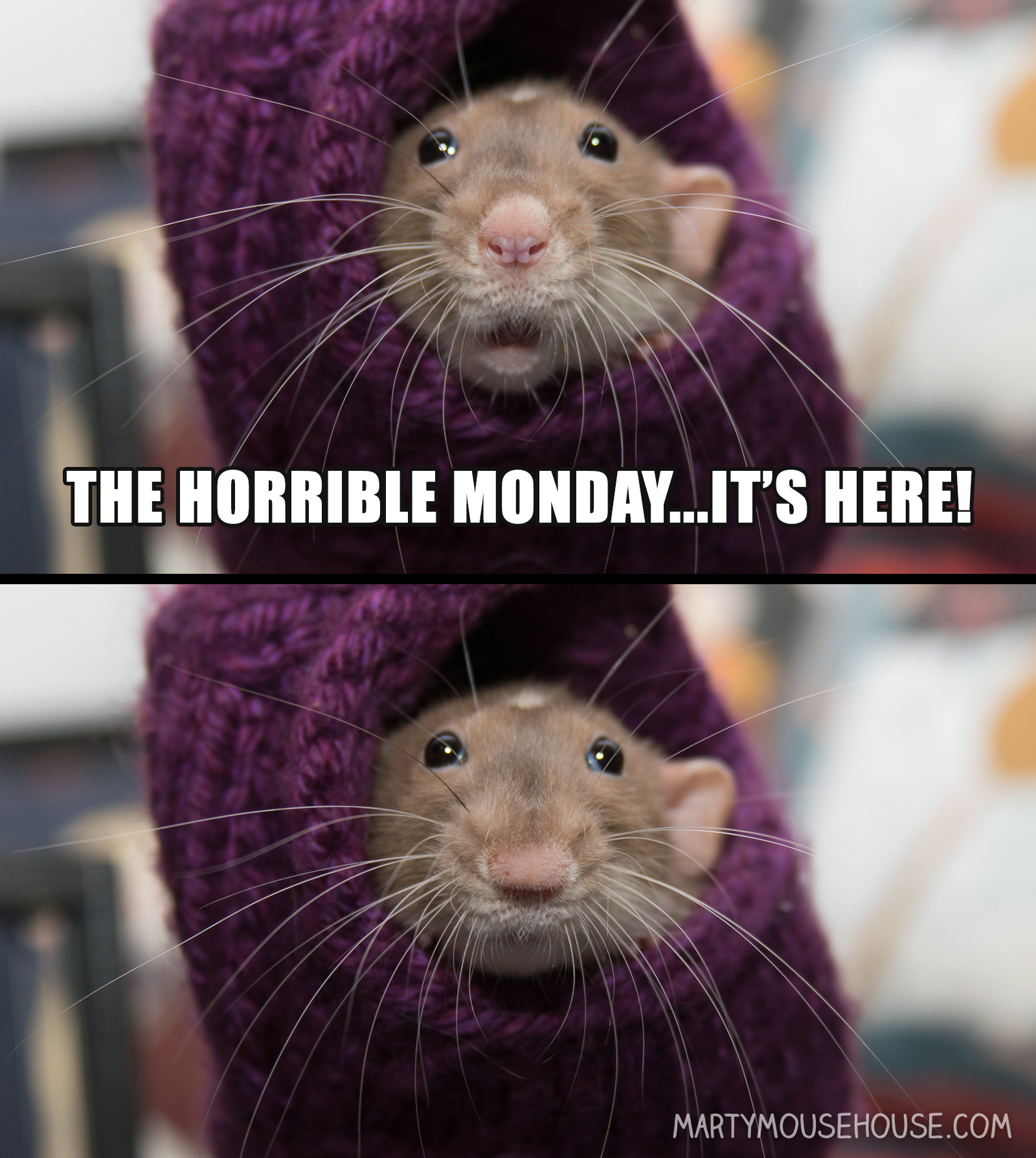 It is here and it is horrible!! Whats say we just hide away somewhere and do snuggles and eat treats all day long? I fink we should invite Cosmo and Augie too though. Then we can all let this horrible day pass us all by. Loves you so much little man ❤❤❤????????????