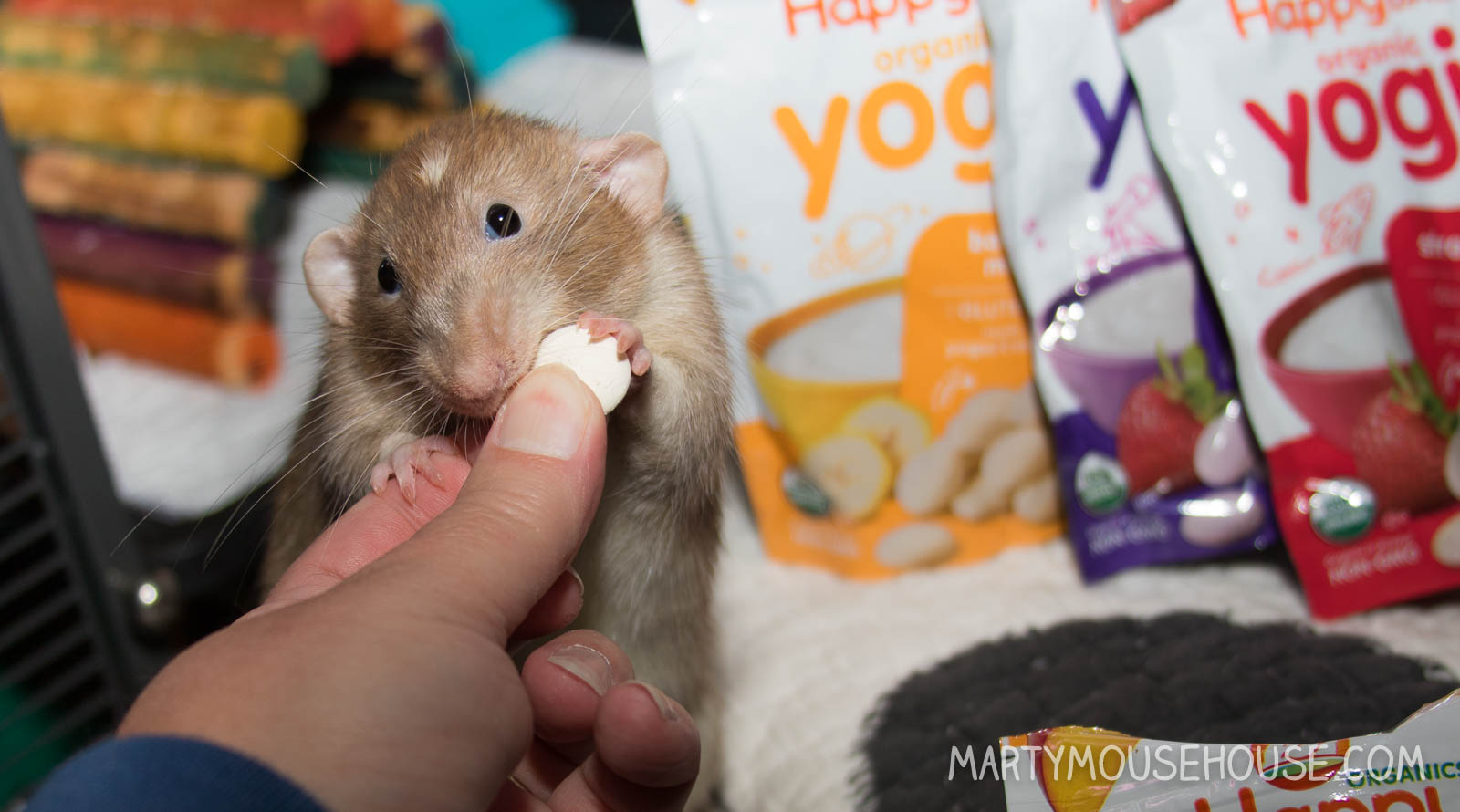 We got a berry nice early christmas present from our friend Elizabeff DeHart – its yogies!!!  And a cute raccoon mug set, but did I mention…its yogies!!!  Fank you Elizabeff!