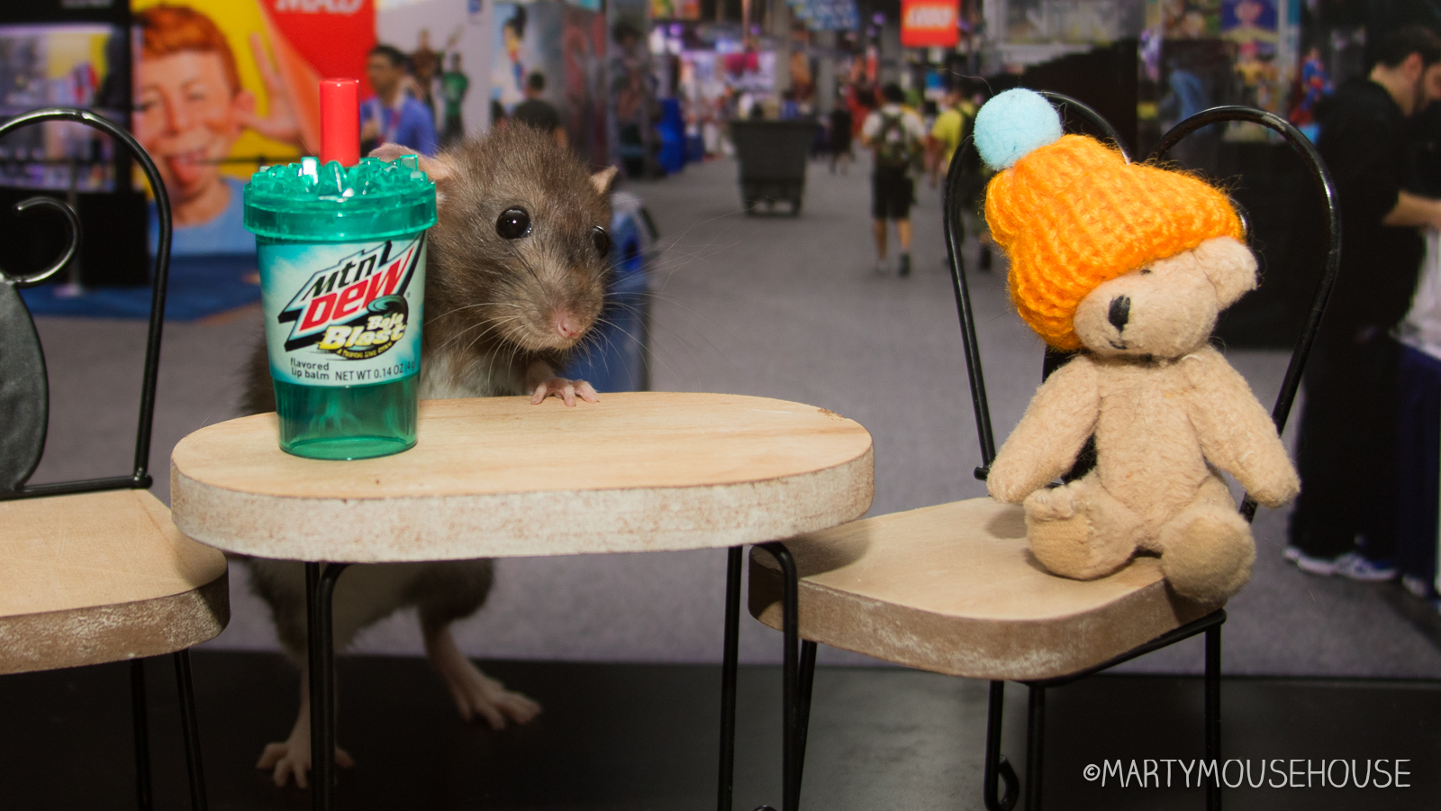 Hello, Teddy here.  I’be been sitting here wiff refreshments while the boys explore all the bendors and look around the show floor.  They keep checking in wiff me ebery so often.  Waffles was just here and he had alot to tell me about all the conbenshun exclusibs they found, and lots ob stuff they bought wiff the numbers. He also mentioned we might not hab to take the train home, not sure what that was about.