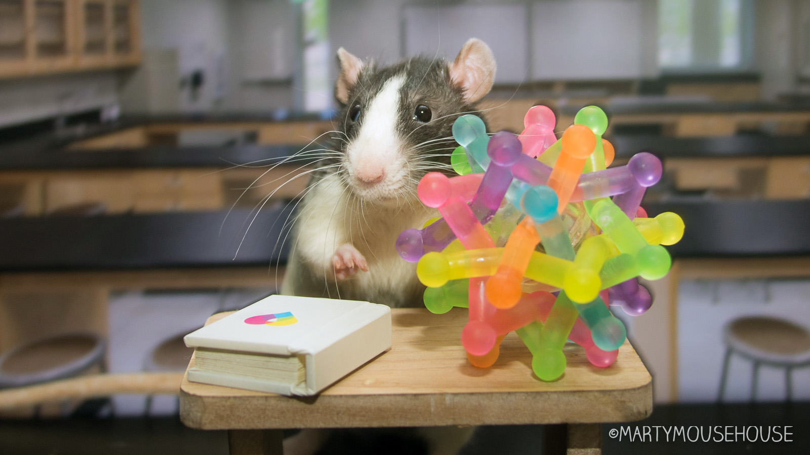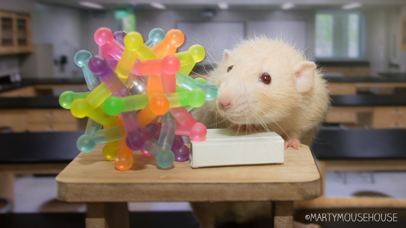 Baxter seems to think that science is delicious! Reminds me of Fibbs as a chef and Milo the scientist, depicted on two of my Marty Mouse pillows 🙂