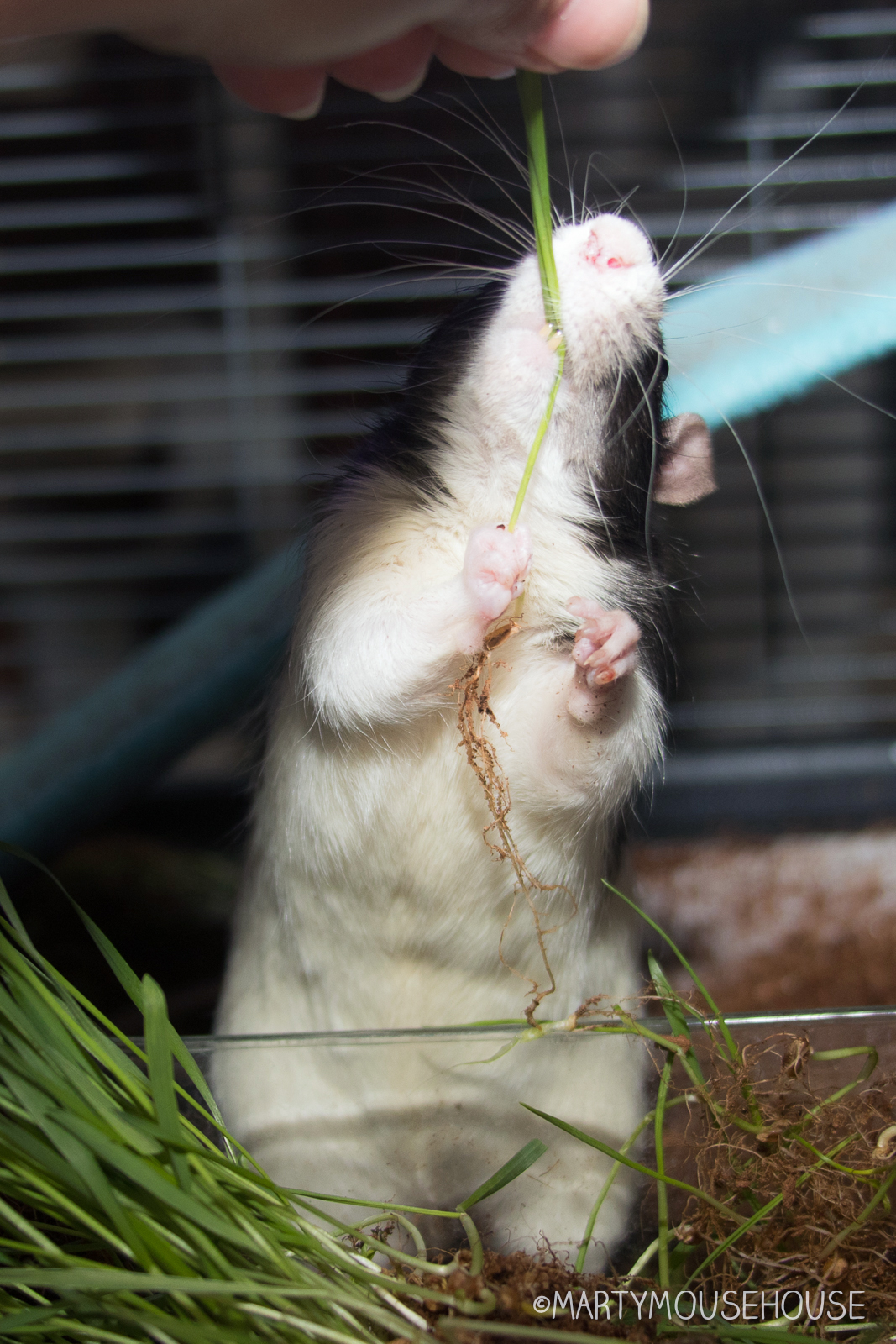 Guess what??! Aunt Minae brought us some wheat grass and it was amazing! We all lubbed it, as you’ll see… and we didn’t make a mess at all, and you know what else? I hab a special secret. I have one ruby one and one black eye. Sometimes the camera will catch it just right, I hab it in my genes. People call it odd-eye, but I fink it’s pretty cool, and kind ob mean to call it odd. it’s more like… spectacularly special!