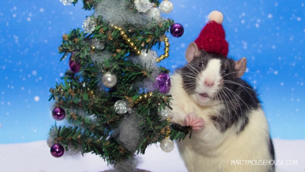Yesterday we had a bisit from our sisters, Wink and Pocket from Rats Have Feelings Too and we did a fambily Christmas photo shoot, so you will be seeing dat soon. It wasn’t berry cold, we were just wearing the hats for to pretend it’s winter. Sometimes you hab to do fings like dat for art. dis Baxter.