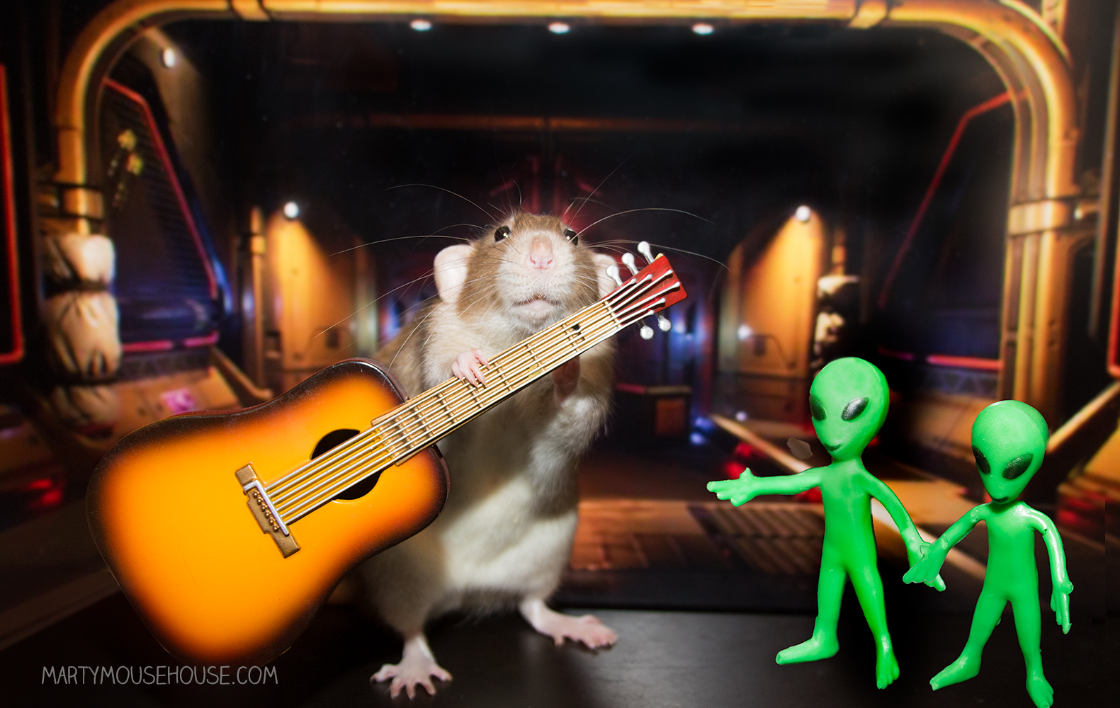 We are habbing a fun time wiff Larry and his friends, their spaceport is so big and interesting, they hab a room for eberyfing. Today we are in the theater and we are all taking turns doing songs from “Baxter Wiff a B” so he can praktice and stay sharp for when he gets to audition for Broadway.
