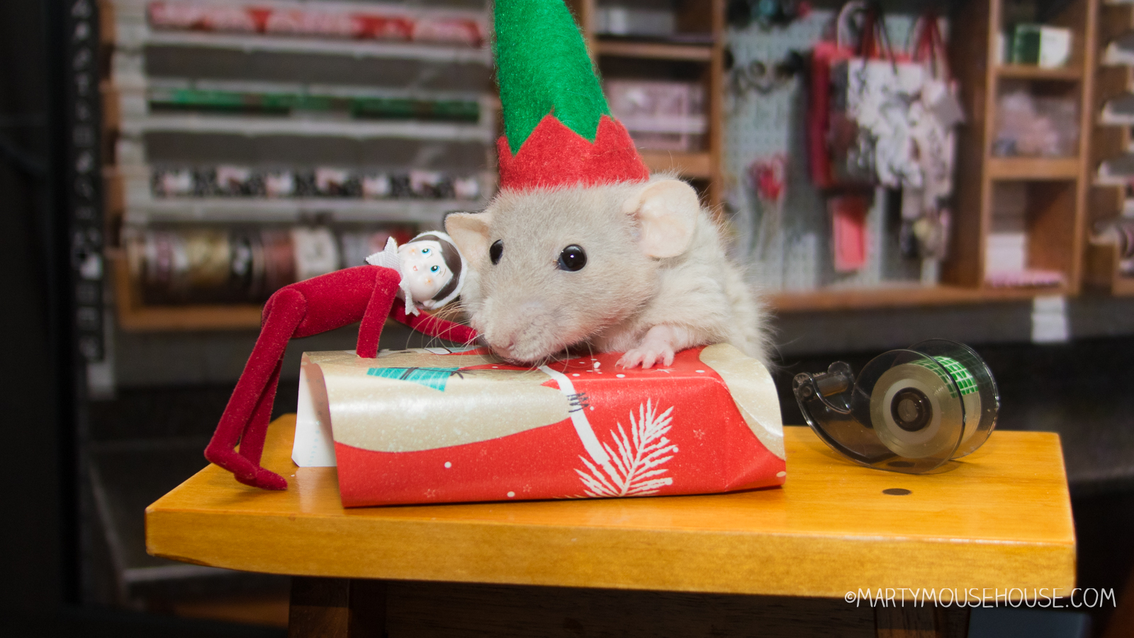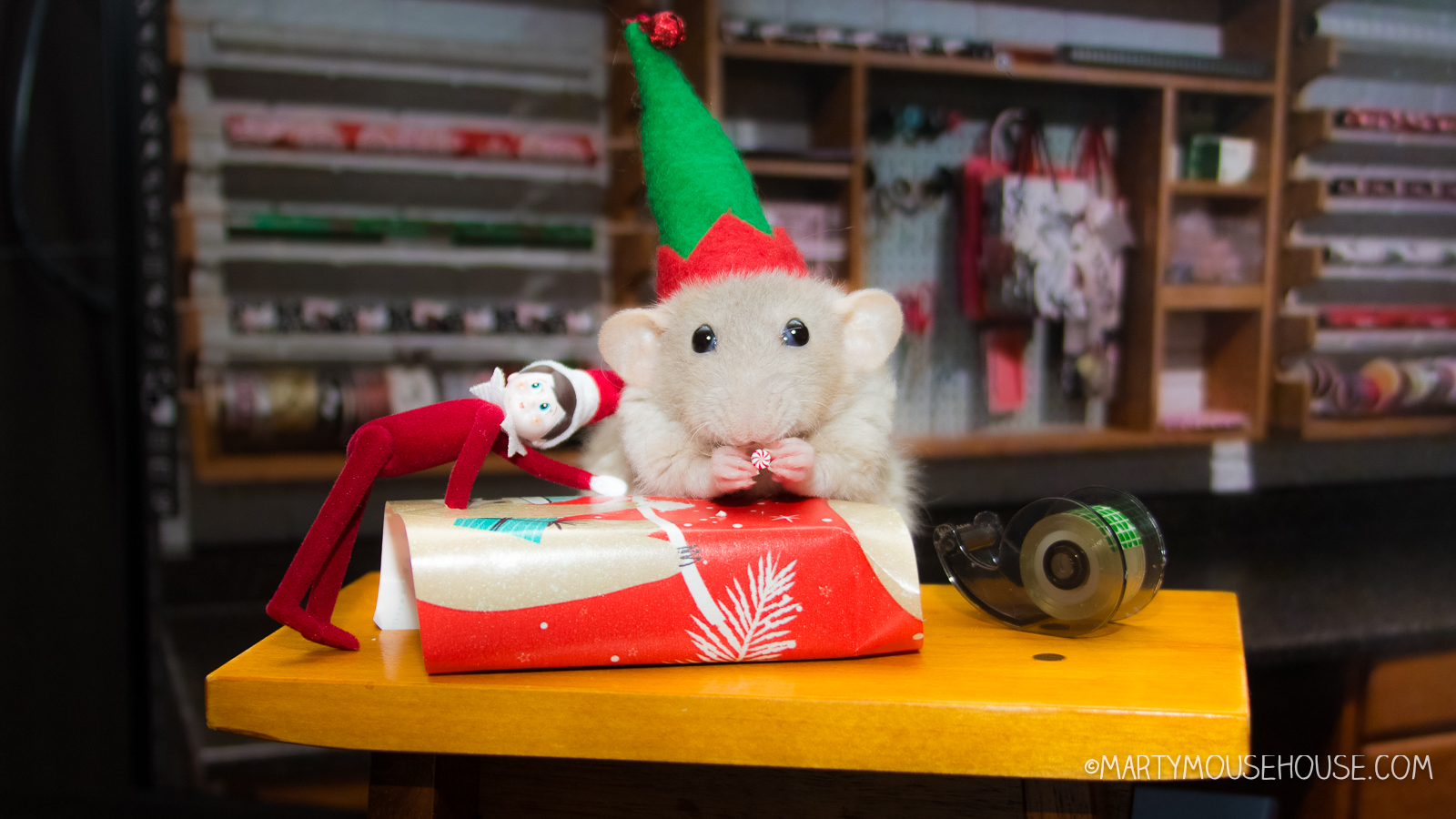Waffles introduced us to Dill dis morning and told us his story – we all felt bad for him because no one should go in the trash bin. So far he habs been berry helpful doing fings around the house. Today he helped me wrap some presents, and then we had a camdy.