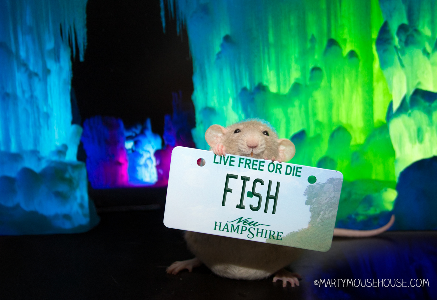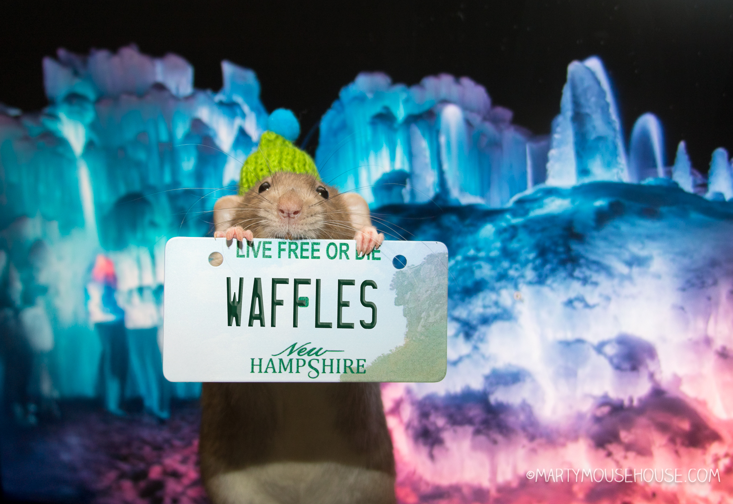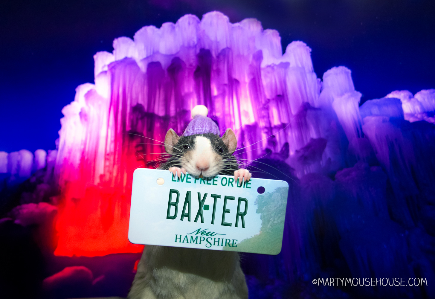 Oh hai, it’s me Reuben and look at dis!!  Our Internashunal Bizness trabels took us to New Hampshire and we found the Ice Castles, and it’s the most beautiful fings I’be eber seen!  And it’s so fun, they hab slides, and caberns and crawl tunnels and polar snacks. I might just lib here foreber.