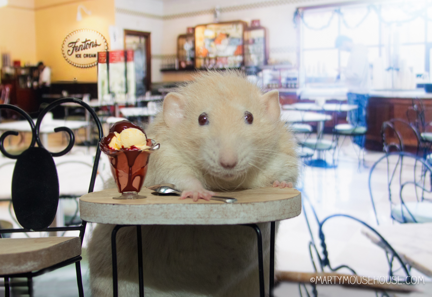 Barry ordered a Black & Tan Sundae, because it felt like the right amount of drama: rich vanilla and toasted almond ice cream, smothered in both chocolate and caramel, wiff mountains of whipped cream and a cherry that Barry berry politely asked to hab on the side, because he didn’t like sticky paws.