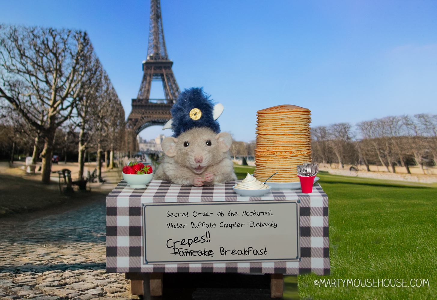Now, in case you were wondering, we did originally plan to do the usual Pamcake Breakfast. But then I, Fish (founder, cheese cartographer, and Minister ob Forks), realized something berry important: France doesn’t do pamcakes the way we do. No, no. In France, they do crepes. So in the spirit ob cultural respect (and because crepes are thin, stackable joy circles), we changed the menu.