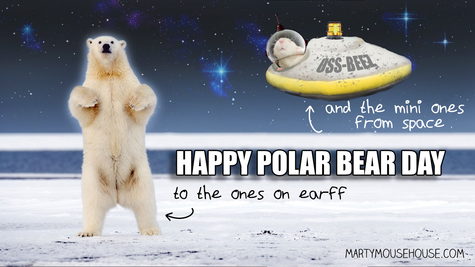 We knew this day would come, our mini polar bear would hab to return to space for a more permanent assignment in the Heaben sector. Saturday was that day – Beez had to go. I don’t fink either ob us were ready. He asked me gib you all a message, it was this: “I hate to say goodbye to all ob you, eben though I didn’t really like taking pictures, I lubbed talking to you guys and telling jokes and sharing sock days and I fank you all berry much for all the lub and messages and times we shared together. It meant the world to me, it really did. You can still feel the lub in space. I’m looking forward to the starberry shakes and cuddling wiff my brothers again, and meeting the ones I habn’t met yet! Don’t worry about me, I hear Heaben is pretty great, Nickels was always telling me all about when we talked on Hype. Ok, my ship is ready, I gotta go now. I lub you all berry much!! – Beez”