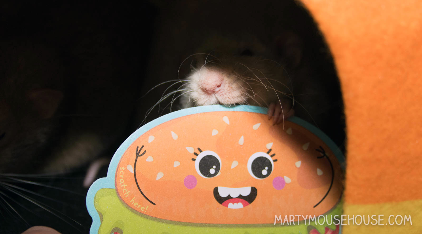 When we had our birffday a few weeks ago, our sisters Roux and Toupee from @RatsHaveFeelingsToo came to bisit and we took a family photo together wiff them! It was a specshul occashun and we couldn’t let it pass (I guess), eben though it meant more time taking photos! Ugh…. mom and auntie Minae lub to take photos ob us all the time, and they made us dress up fancy. Those bow ties were itchy! But I fink this was worff it, we all look pretty fancy schmancy and dapper, and we did get to hab more cake afterwards. The cake was really really good, I can’t wait to hab another birffday next year! We lub our sisters and Auntie Minae! xo