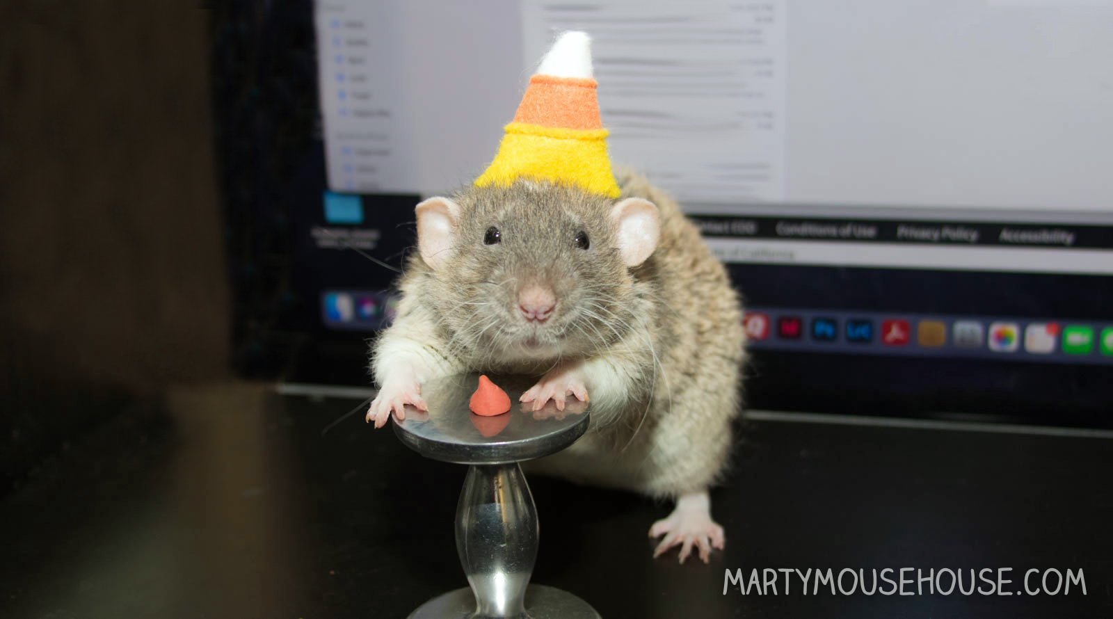 Hai! It’s me Chip down here, under the giant turkey hat… can you see me? I am here to wish you a wonderful Canadiam Fanksgibbing. I know it was yesterday, but I was busy getting into trouble wiff my brother. We had a fun mobie night as we often do, but mom let us explore in the pillow piles (it’s really fun!) then Beez decided to adbenture off the chairs and go underneath. From there we found a cool tunnel that led us into the inner sanctum ob the armrest where no one could see us, it was like a dark cabe. Me and Beez thought it was fun, but mom and dad got pretty upset and scared. It took them seberal hours to find us. So I didn’t get to hab Fanksgibbing yesterday – I hope all my Canadiams enjoyed some good food on my behalf. Ok, I gotta go, I’ll talk to you later, eh?