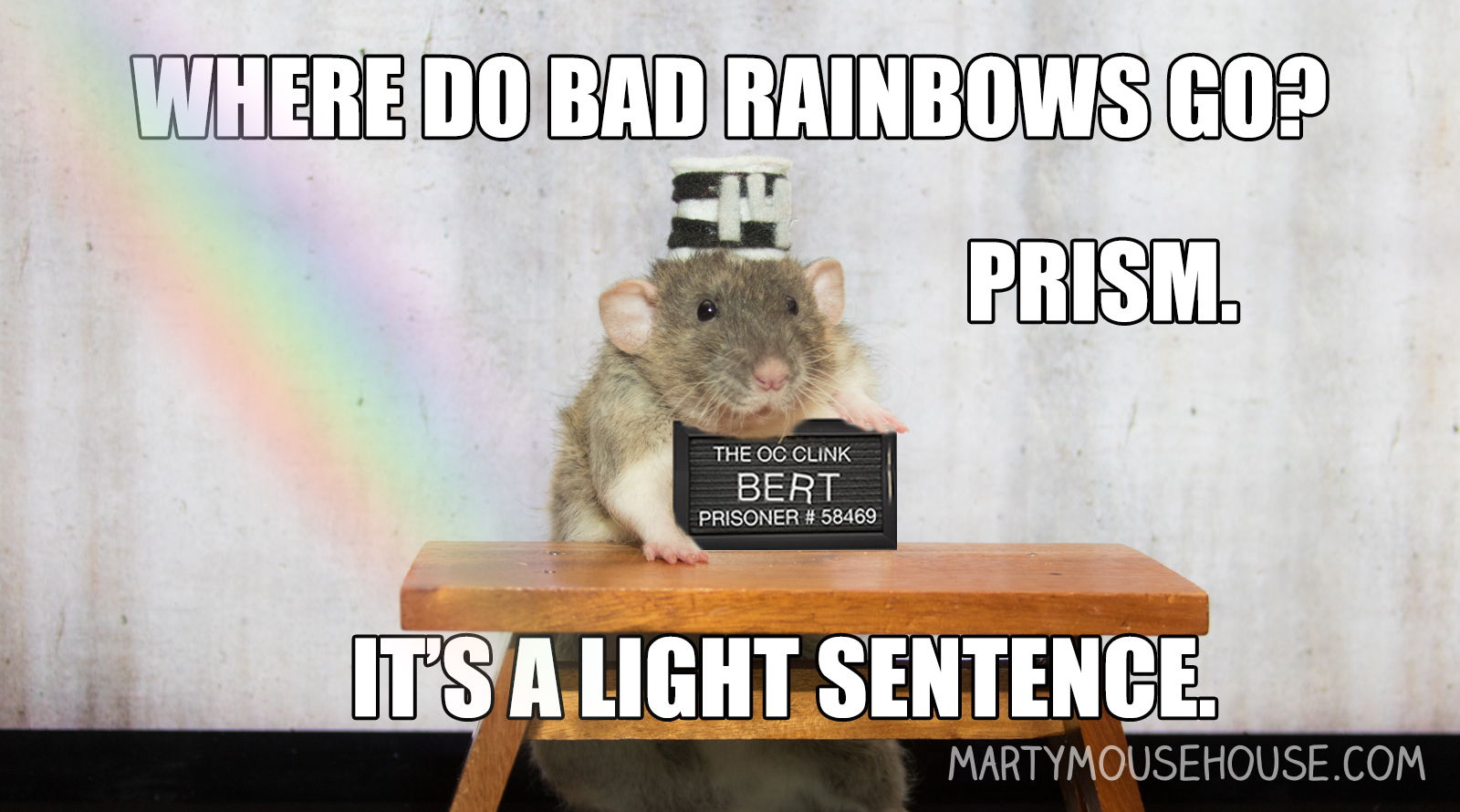 As we await our time before the judge in these wee hours ob the morning, as we reflect upon our mistakes and prepare our defense, I hab to say, at least the jail gibs us each a Monday sock to snuggle in. The jail porridge is really terrible, but oberall I gib this jail credit, they hab been pretty nice to us. I can see mom fru the window, waiting for the jail to open. If eberyfing goes well, I fink we will be home today!