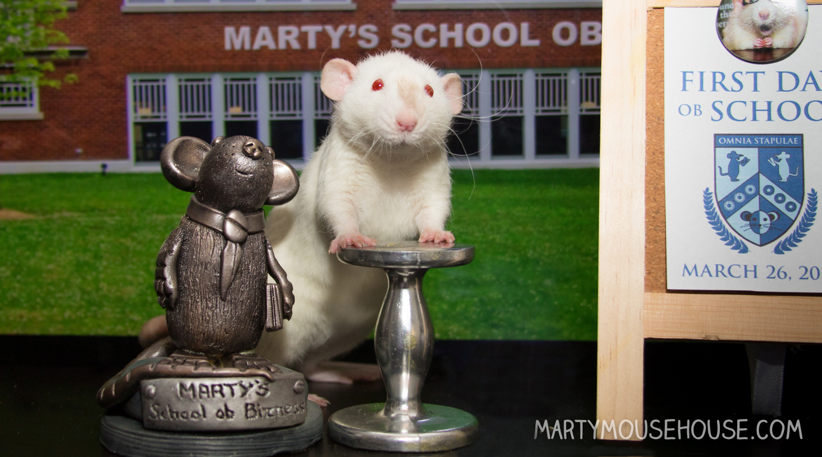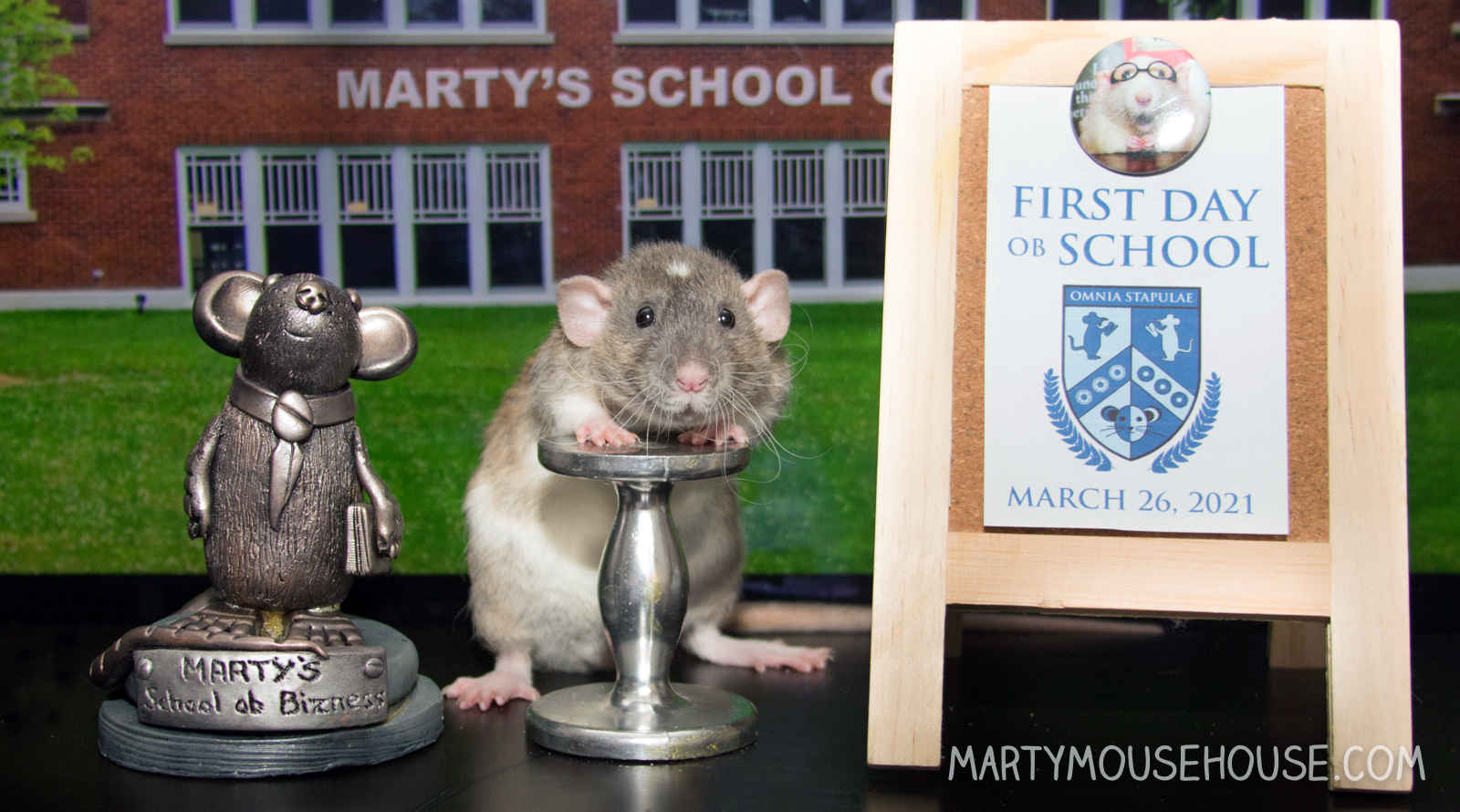 Hey eberybody! We got to tour the MSOB grounds today to get familiar wiff eberyfing before we start offishul school. It seems like it will be fun, lots of interesting fings around. We didn’t get to do much, but we saw some stuff and looked around. I fink when Chip saw the red stapler, he was a little oberwhelbemed. He seemed pretty nerbous, but it will be ok!