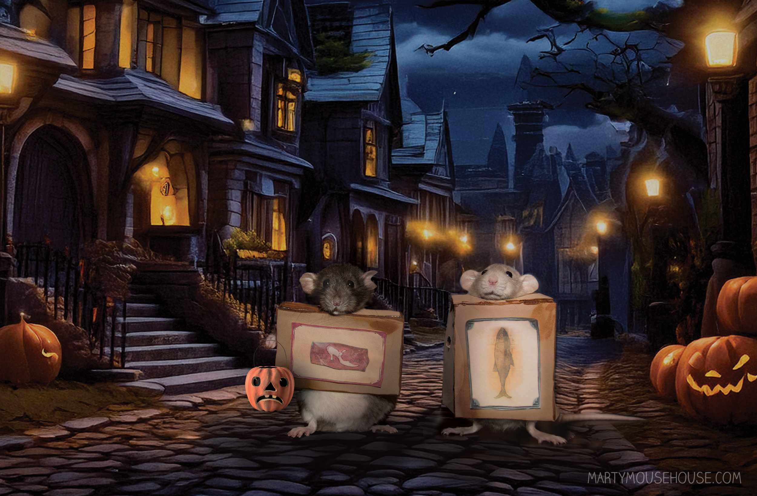 It was a dark and stormy night, as the two tiny Boxtrolls, Fish and Shoes, set out on their Halloweem journey. Secretly shadowed by their brothers to keep an eye on them from around the corners…there were creaks and groans coming from places unknown, but still they persisted and summoned their bravery from deep down wiffin to go up and knock on doors to get some camdy. Ober and ober again until their buckets were ober flowing wiff all different kinds ob candy – and what is dis??? Raisins?!?!? Are you kidding me?? No, we will fro those out.