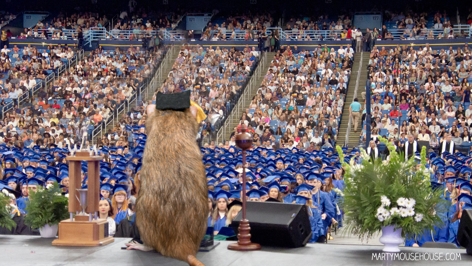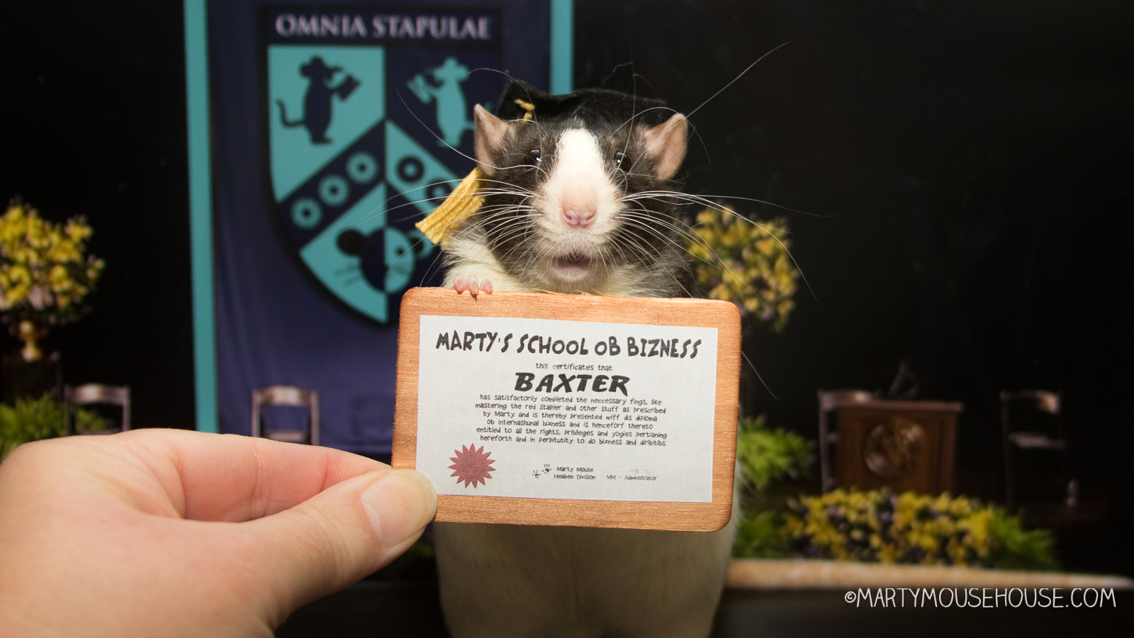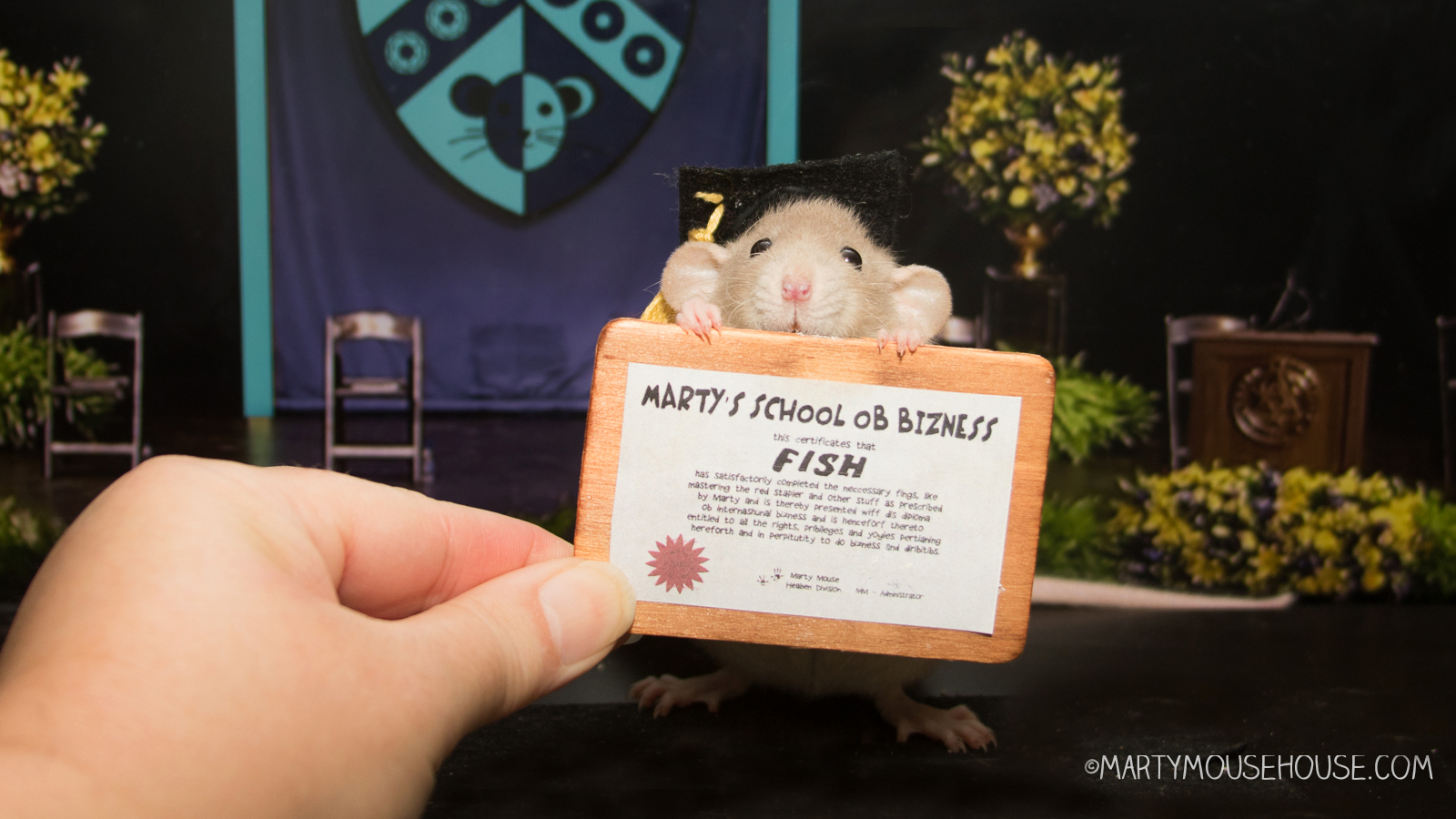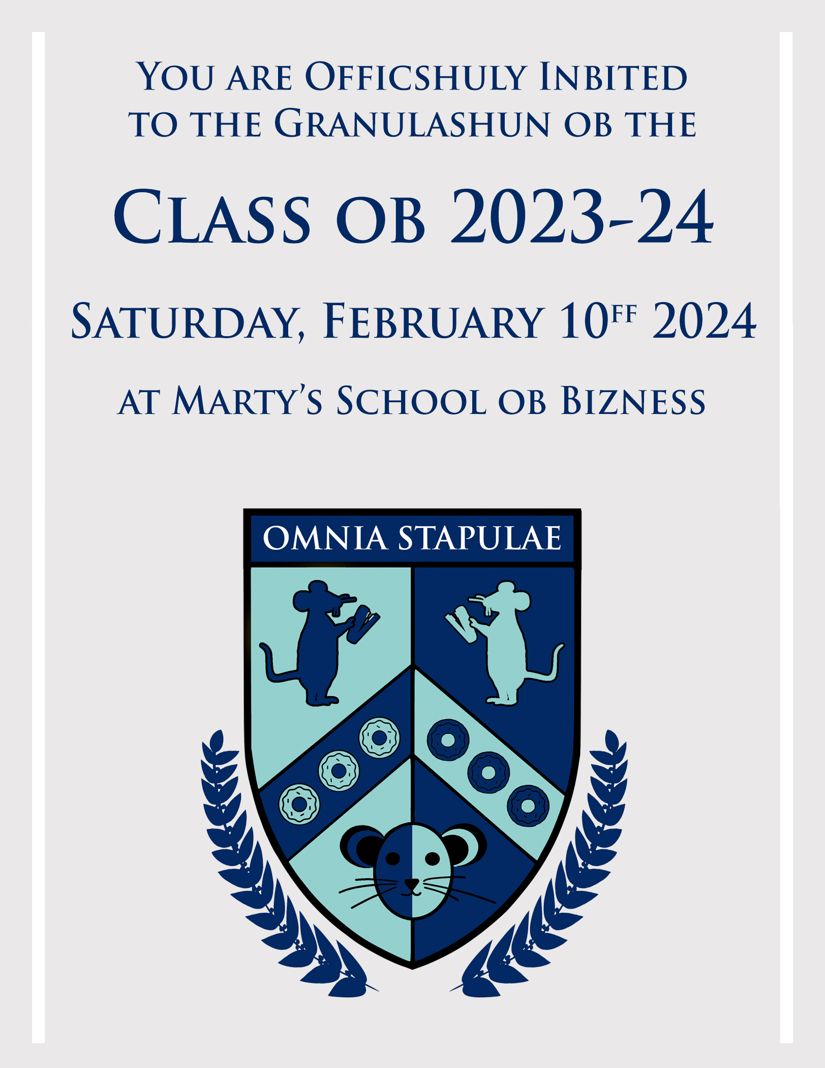 Good Afternoon eberybody – fank you for coming to the Marty School ob Bizness granulashun ceremony!