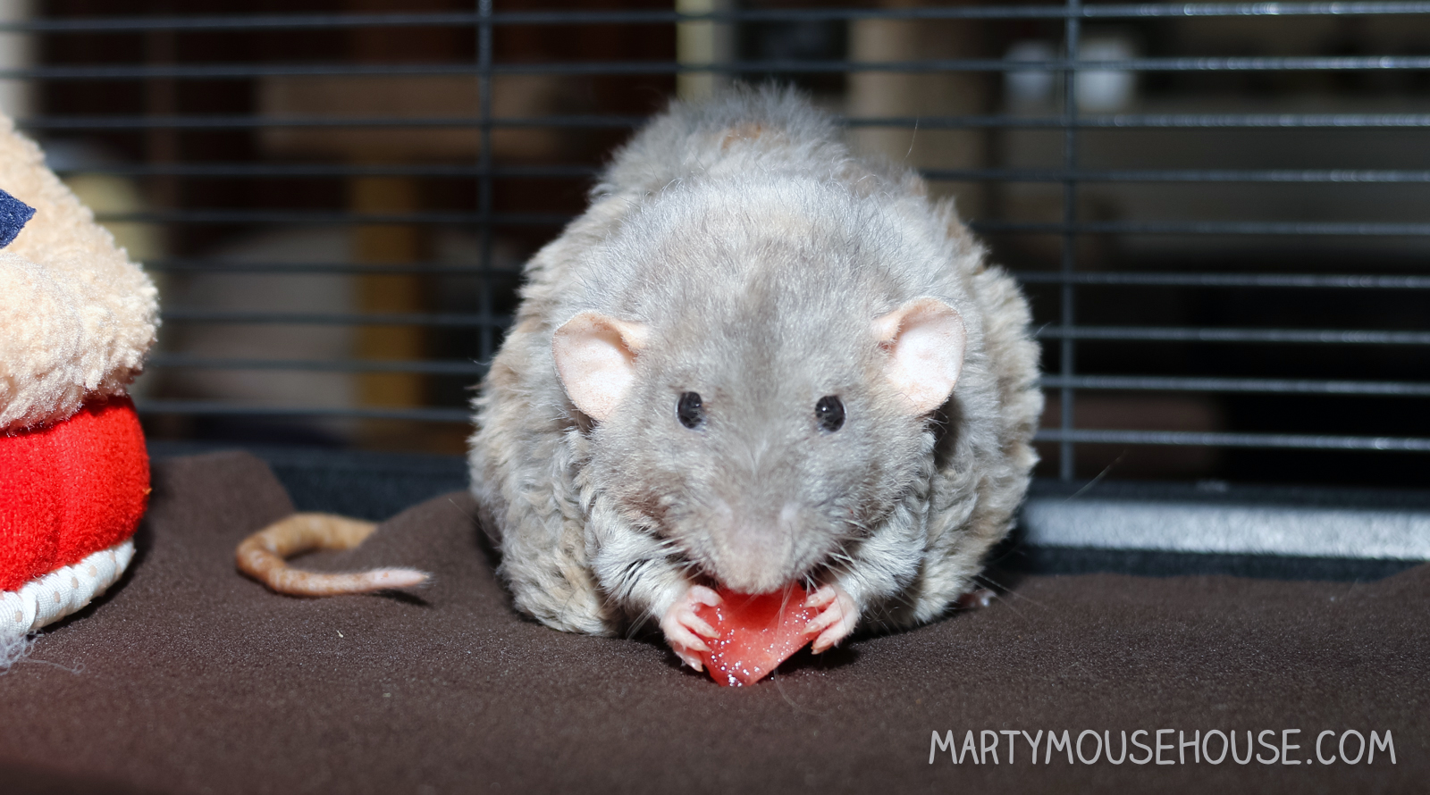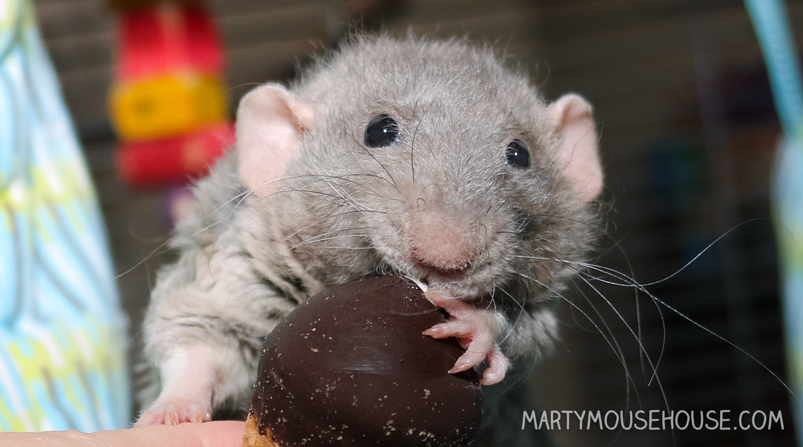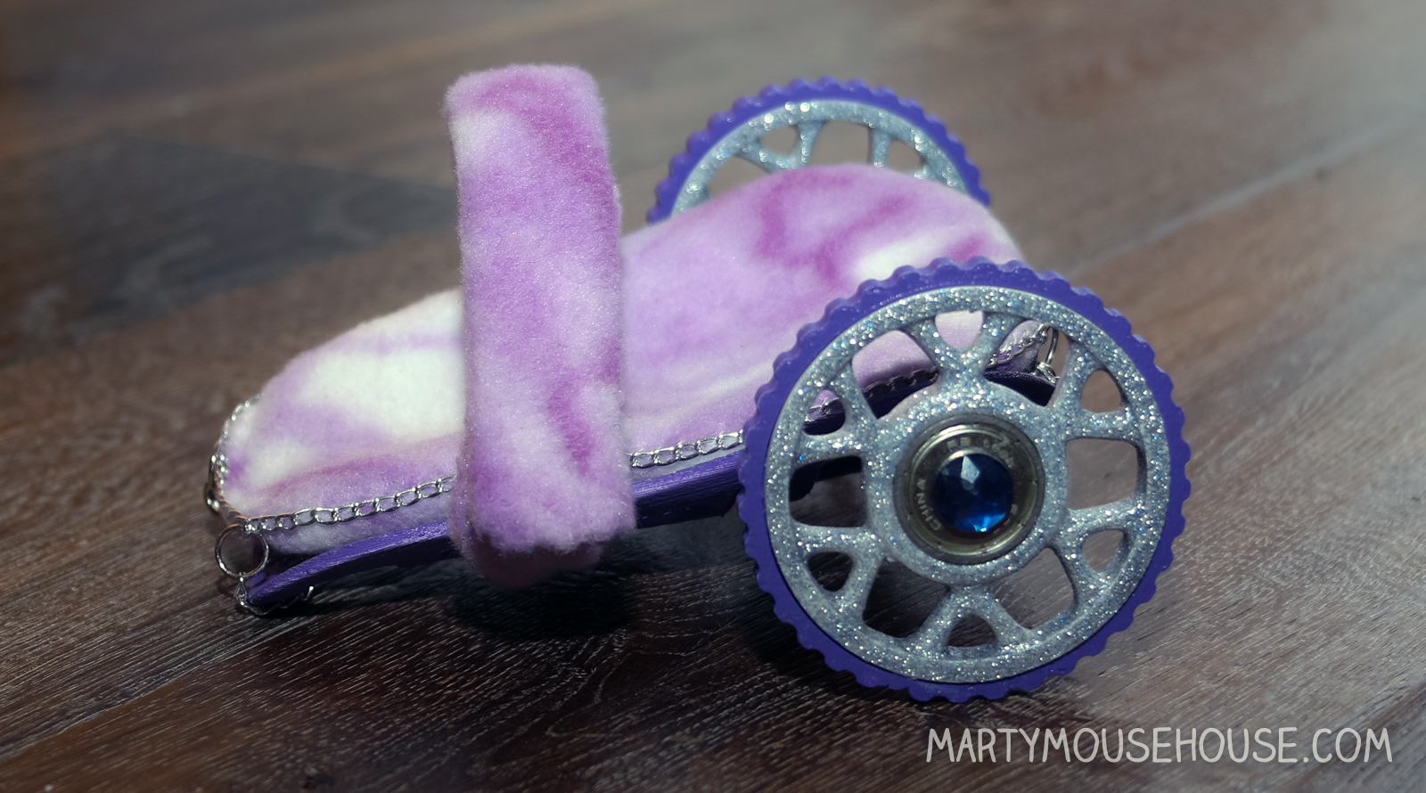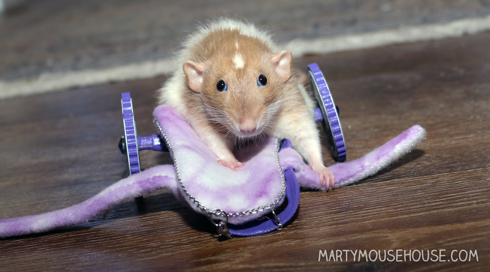 As you all know, eberybody gets older and starts habbing old age issues – it’s a part ob life, eben if you are king. I hab been habbing issues wiff my back legs (HED) the last few monffs. Sometimes you can get some wheels to help you out, and my friend Laurel Sulliban who libs in Florida 3-D printed dis one for me wiff the plans from Mainely Rat Rescue, and gab it the super duper royal custom treatment – I fink just the right amount ob bling for a king!