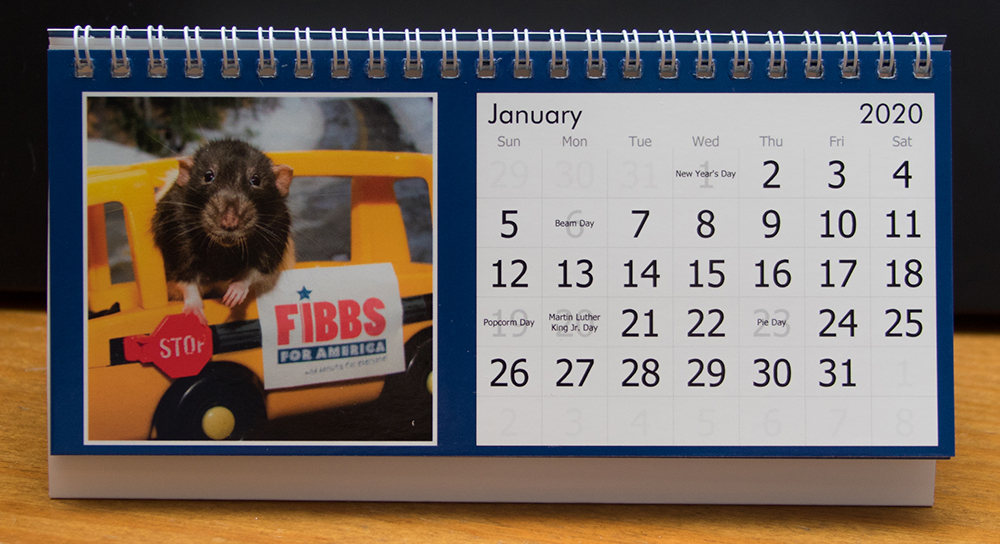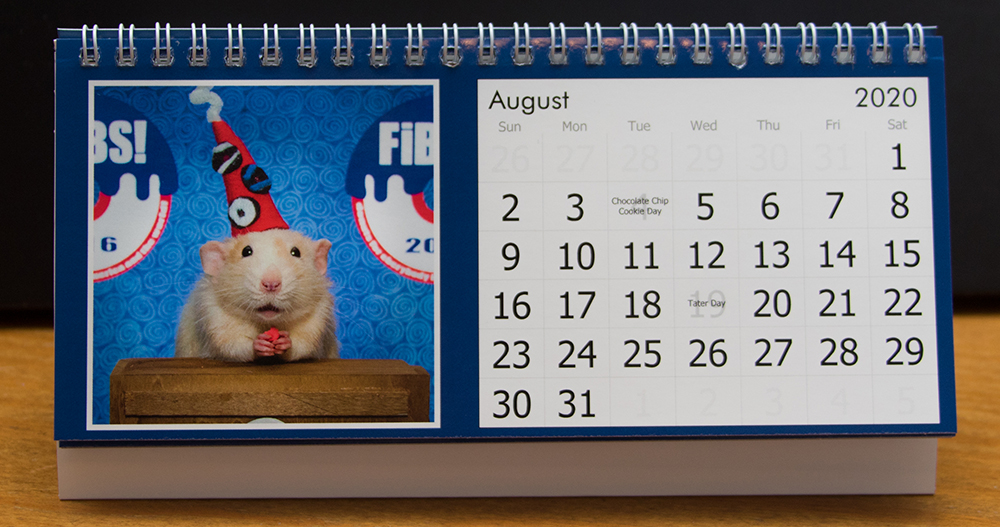 Here is a closer look at the Fibbs 2020 Desk Calemdar. We know it’s hard to see the thumbnails in the store, so we will be showing the details on each one so you can see it better! Fanks for supporting Marty Mouse House and doing some International BIzness. We lub you!
