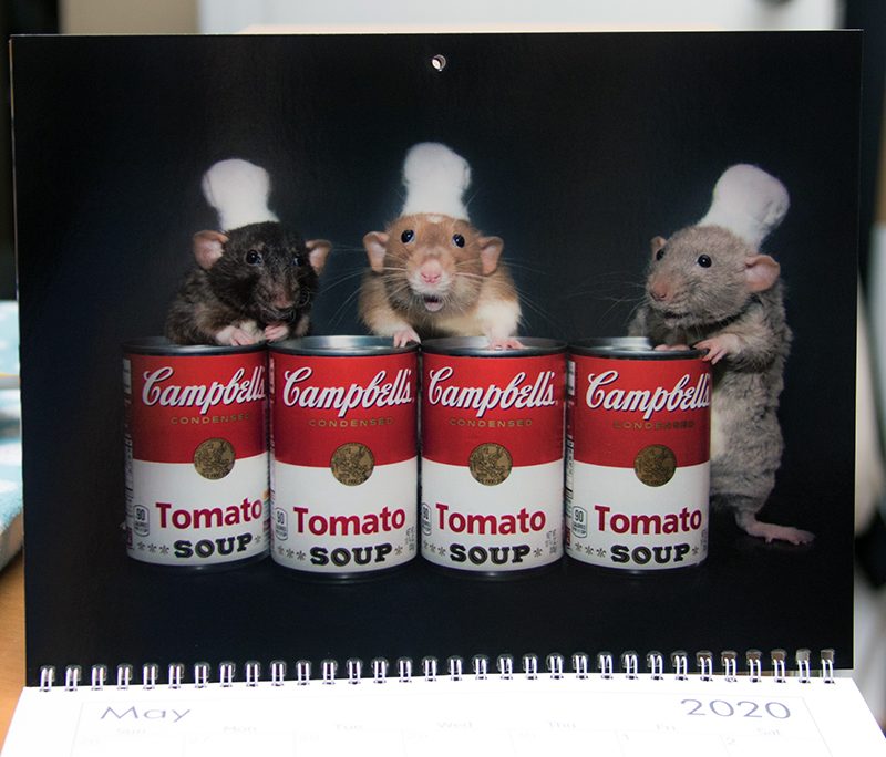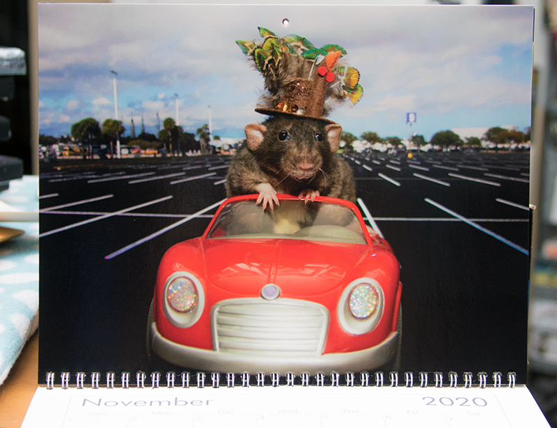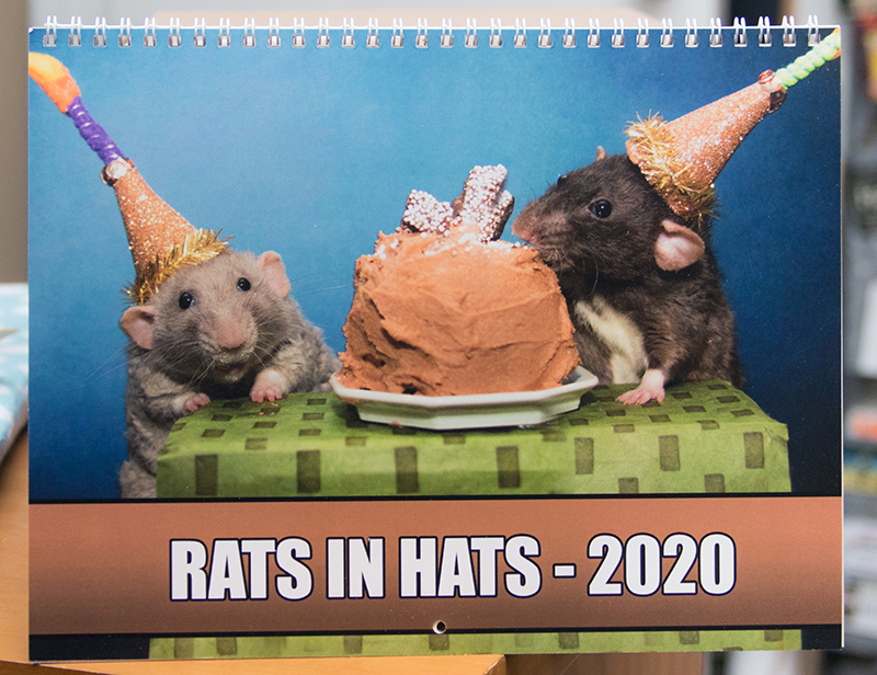 Here is a closer look at the Rats in Hats 2020 Wall Calemdar. We know it’s hard to see the thumbnails in the store, so we will be showing the details on each one so you can see it better! Fanks for supporting Marty Mouse House and doing some International BIzness. We lub you!