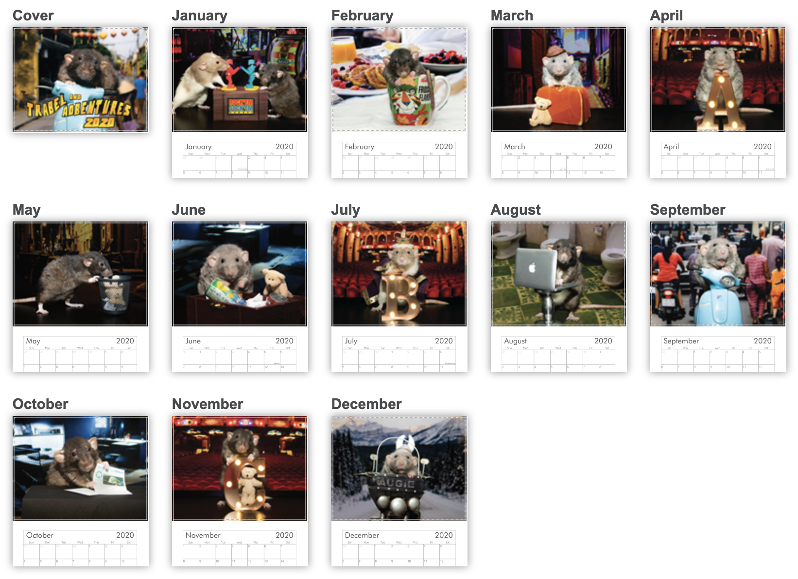 Hai, it’s me Augie! If I look a little sad it’s because I don’t hab a cookie like I do on the calemdar. Mom is back (for now, she will hab to go again soon) But the calemdars hab been coming in so we will be sending them out as we can – fanks for being patient if you hab an order in – the three bersions we hab ordered so far turned out great! (Snacks, Fibbs Electshun Year 2020 and Trabel & Adbenture) We try to get bizness done wiffout mom here, but it’s hard because sometimes we can’t reach stuff.