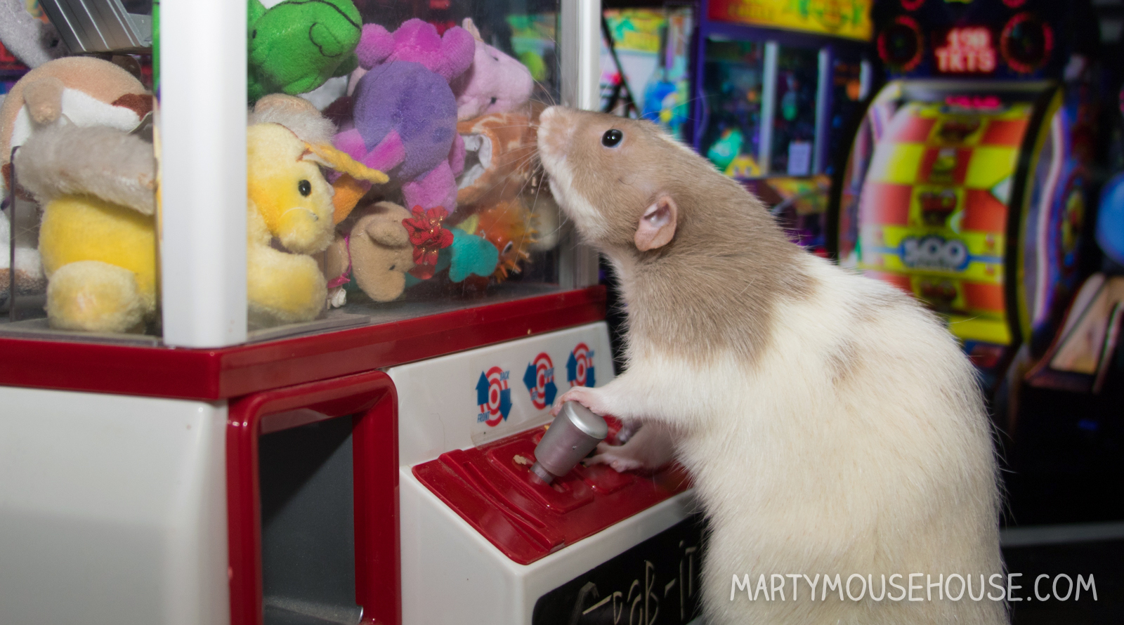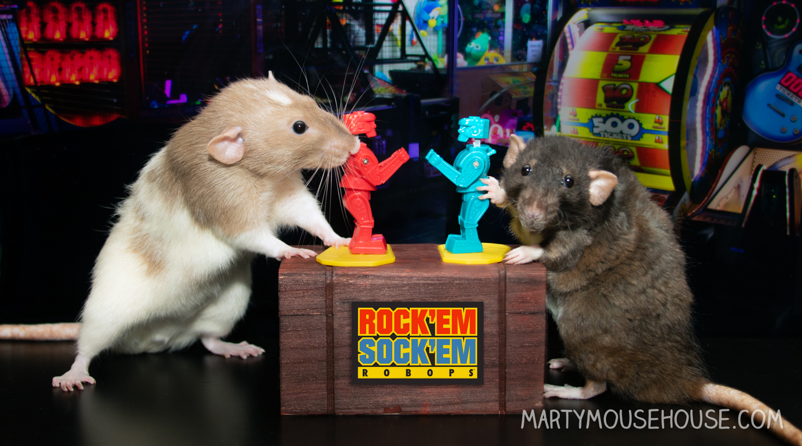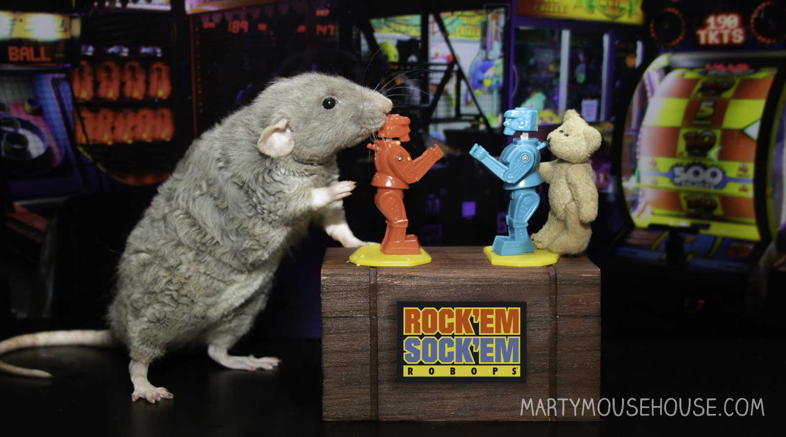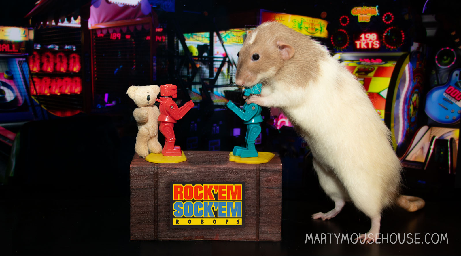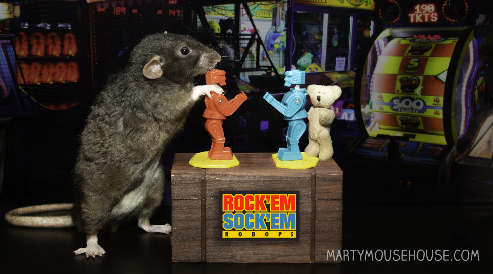 Ok, fine. Teddy won, ok?! He habs a much more compact center ob grabity and punches really fast!! But we all win because next we get to play the crane game and try to win some bedtime buddies!
