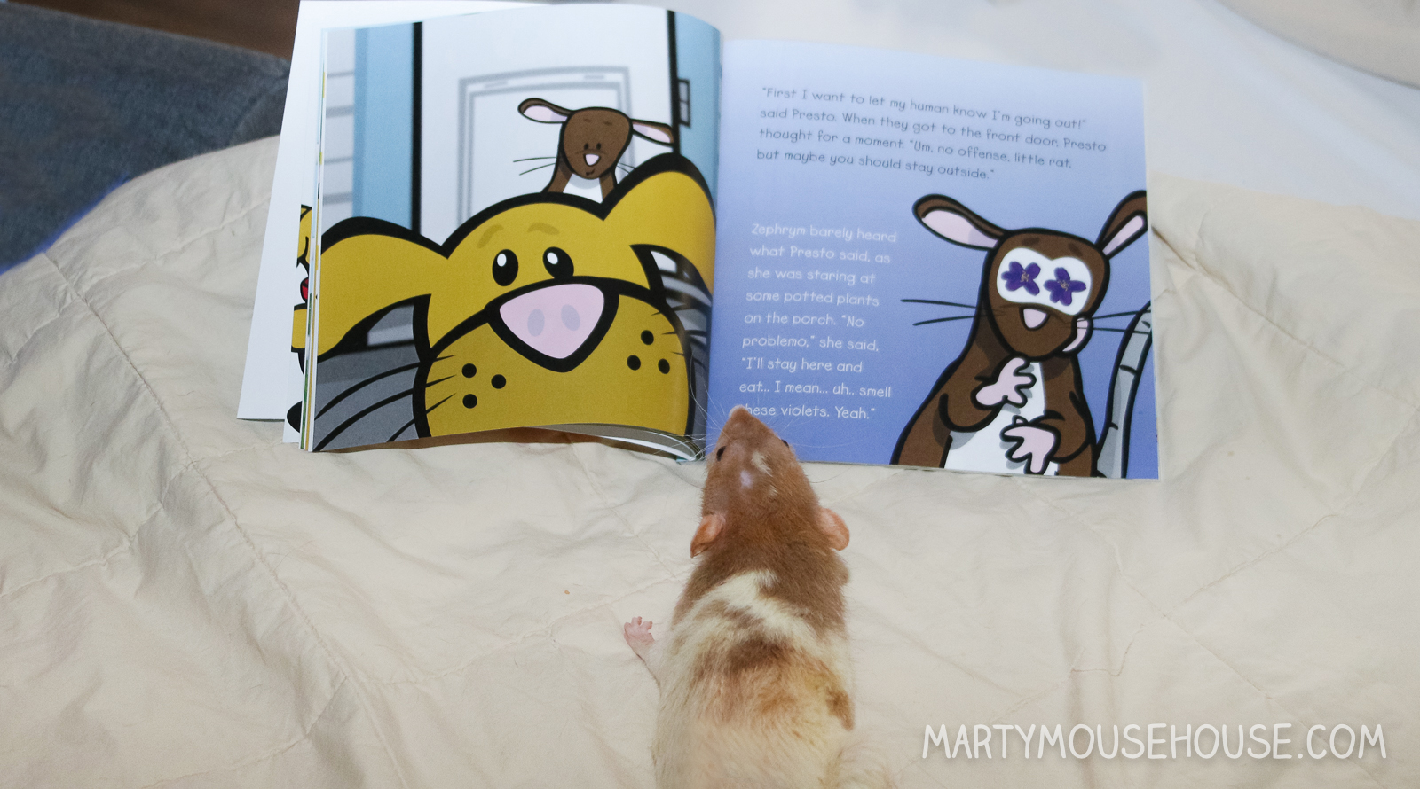 Tonight I asked mom if she would read me a bedtime story to help me get to sleep. I can read, but sometimes it’s just nice to hab someone read to you, so me and Teddy listened to the story and looked at the pictures. The book was called Preto & Zephrym Save the World by Allison Cossitt, and it’s a story about a dog and rat that sabe the world, but I don’t want to say any spoilers, well, I guess it’s in the title, but to find out how or why the world or whoeber was in trouble in the first place, you hab to read the book! dis Bean.