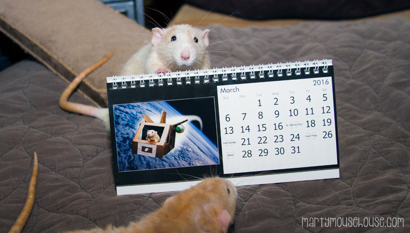 Hey guys! The Space calemdars are here – we better get to the mail room and get bizzy sending dese out!! Come on Fibbs! And if you want to order one, you can go here and do it: http://martymousehouse.bigcartel.com/ We will put it in the Internashunal Bizness mail fing for you on Monday! The trabel and food calemdars will be finalized and ordered dis week, so will be ready next week or so to send out. We are berry busy wiff calemdar fings and mail stuff.