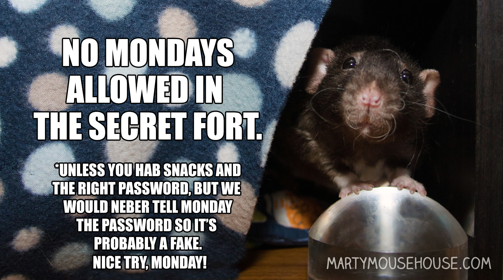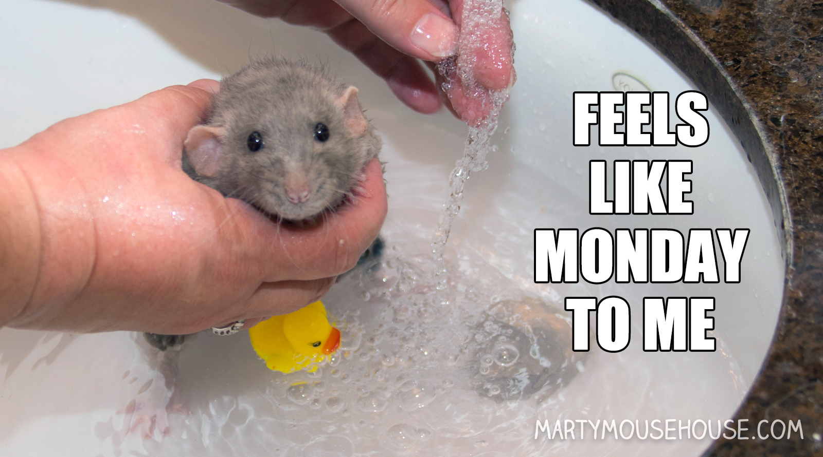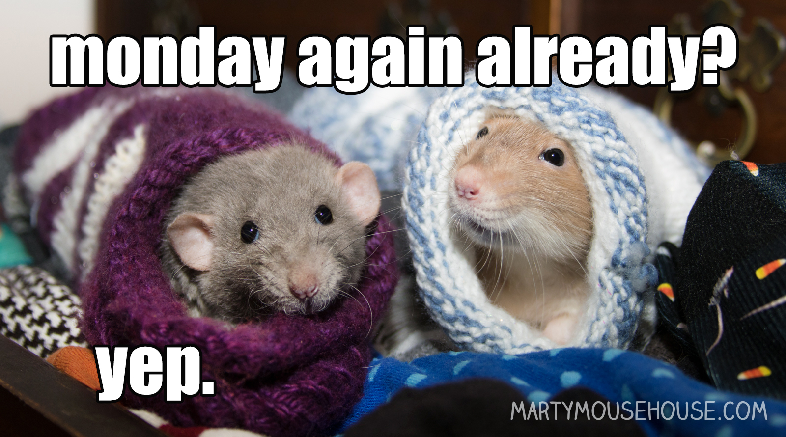 It’s Monday again. We hab been in our sock since last Wednesday for the most part. We just come out for snacks, to stretch, and to hab pee breaks, otherwise we stay comfy in here and take naps and watch teebee. Sometimes we call out for snack deliberies!